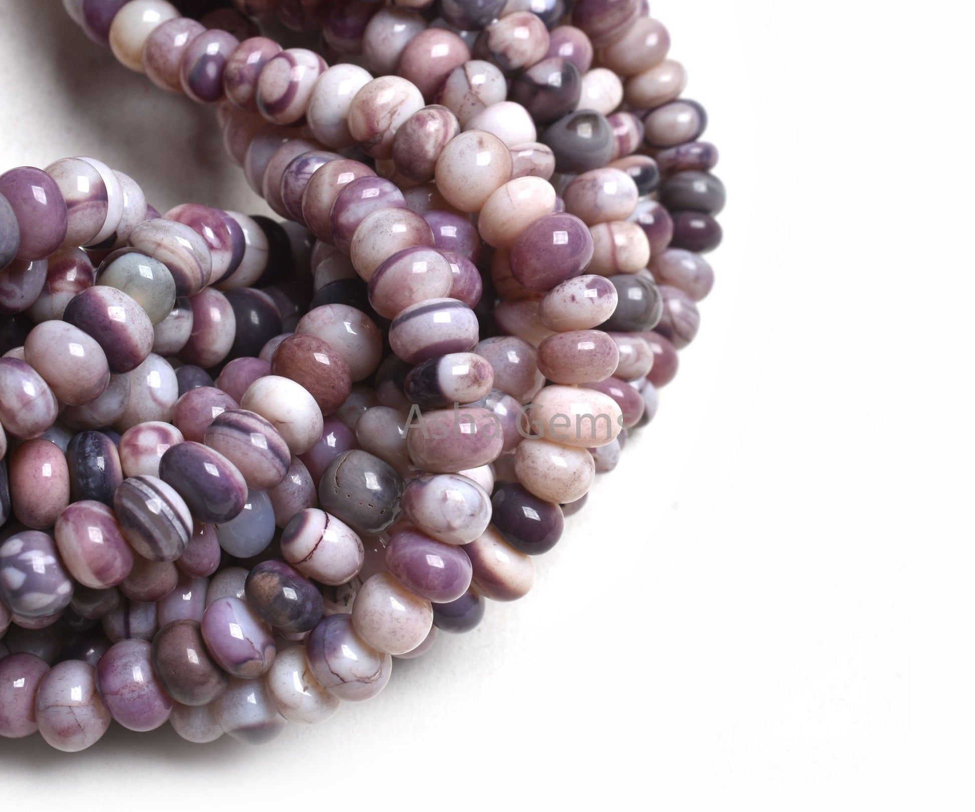 7-8 mm Shaded Plum Purple Opal Smooth Rondelle Shape Beads,16" Strand Opal Beads, Lavender Opal Plain Handmade Gemstone Beads Jewelry Crafts