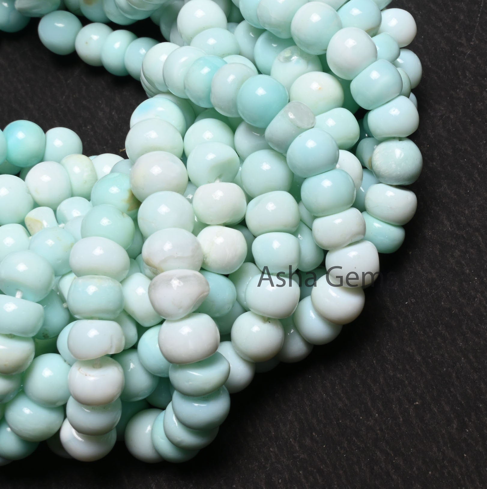 7mm Shaded Sky Blue Opal Smooth Rondelle Beads, Fine Peru Blue opal Beads, Beautiful Opal handmade Gemstone Loose Bead Necklace Jewelry SALE