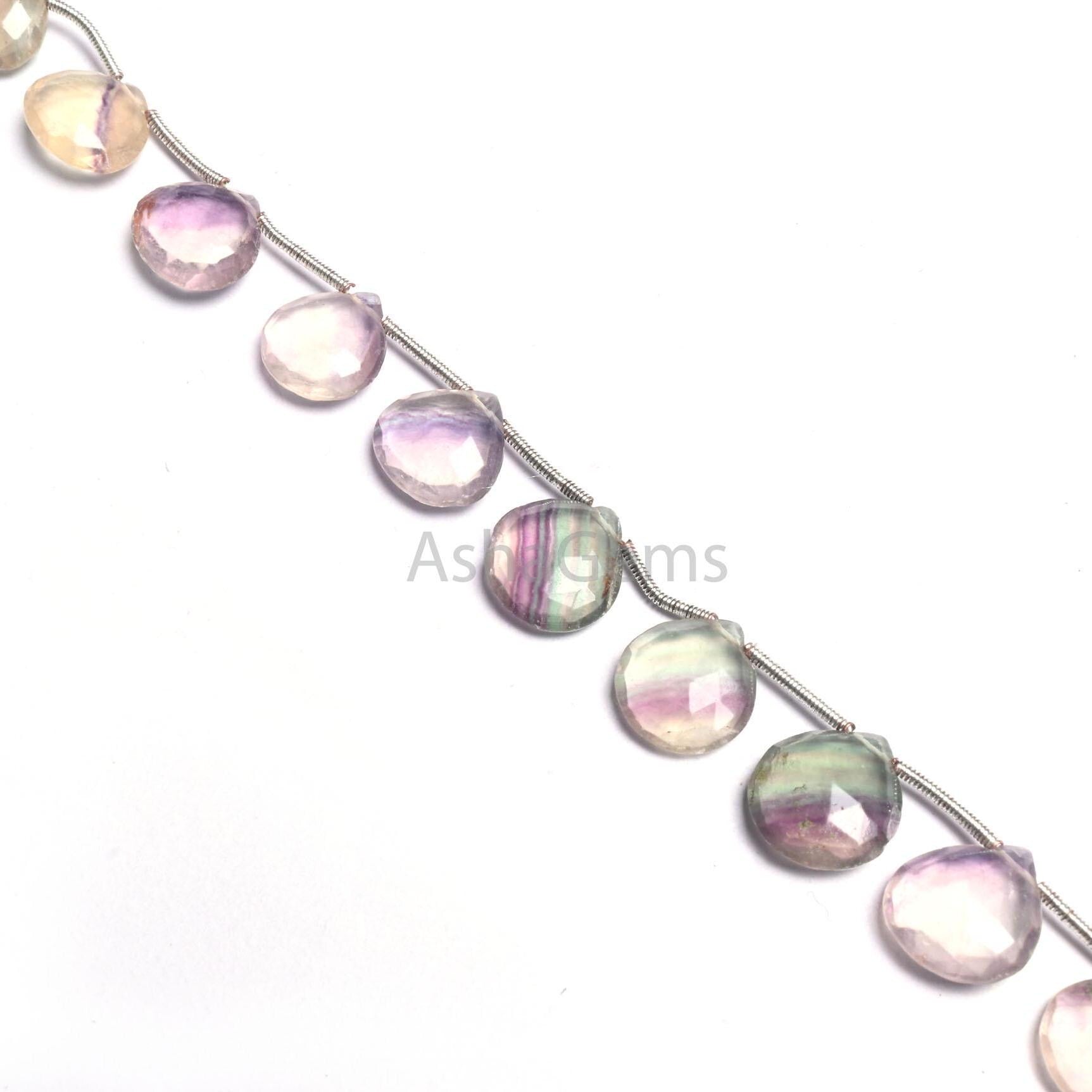 8" Beautiful Multi Color Fluorite Faceted Heart Gemstone Beads,10-12.5 mm Natural Fluorite Briolette Heart Bio Fluorite Beads Jewelry SALE