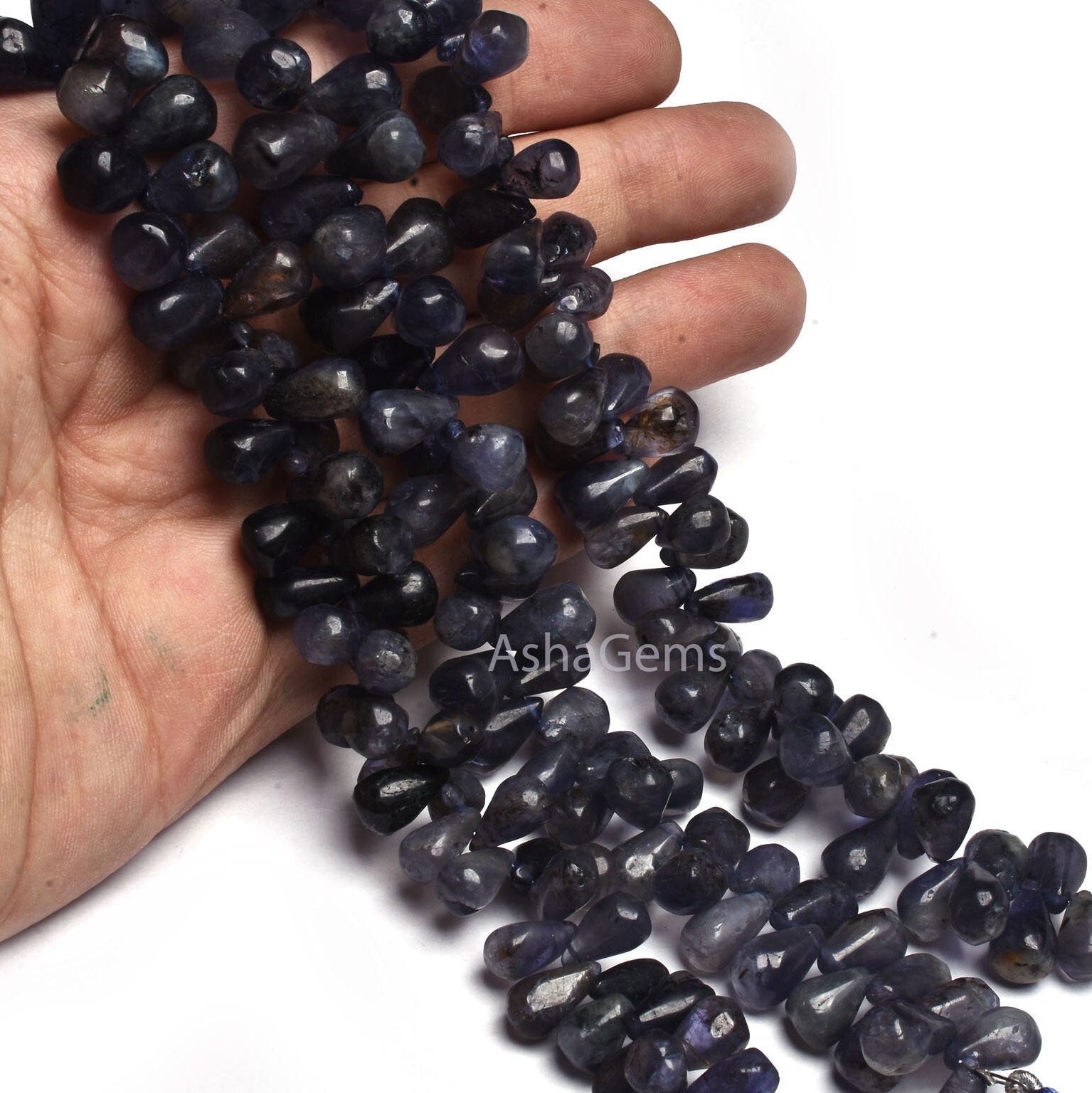 8 Inch Full Strand Blue Iolite Smooth Drops Shape beads, Natural Iolite Beads. handmade Teardrop Gemstone Bead For Jewelry Making Craft SALE