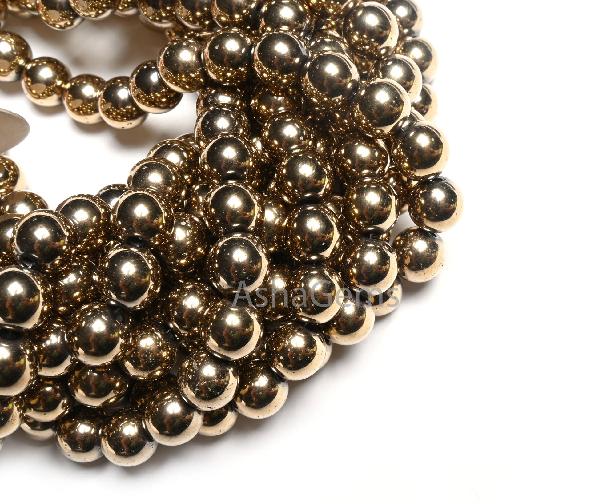 8 mm Beautiful Golden Pyrite Smooth Round Ball Gemstone Beads, AAA Quality Pyrite Gold Plated Round Shape Plain Pyrite Bead Jewelry Crafts
