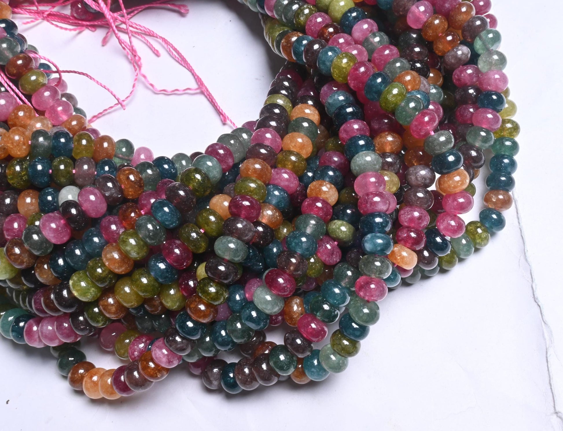 8 mm Beautiful Tourmaline Color jade Quartz Smooth Rondelle Beads,15" Fine Multi Color Shaded Tourmaline Quartz Gemstone Beads Jewelry Craft (AG 12318)