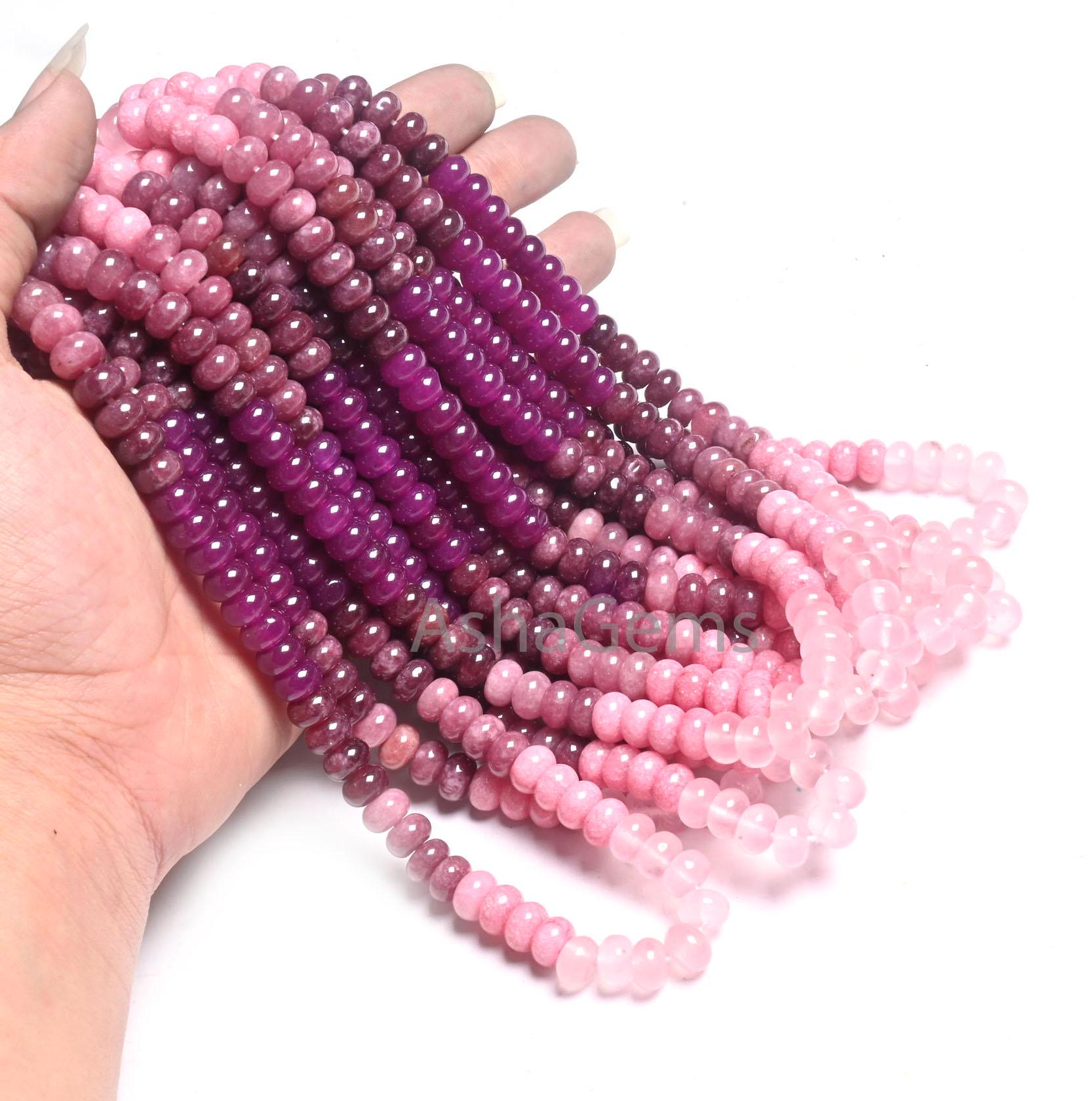 8 mm Multi Pink Jade Quartz Smooth Rondelle Gemstone Loose Beads,16" Shaded Bubblegum Pink Quartz Polish Beads Jewelry Necklace Crafts SALE