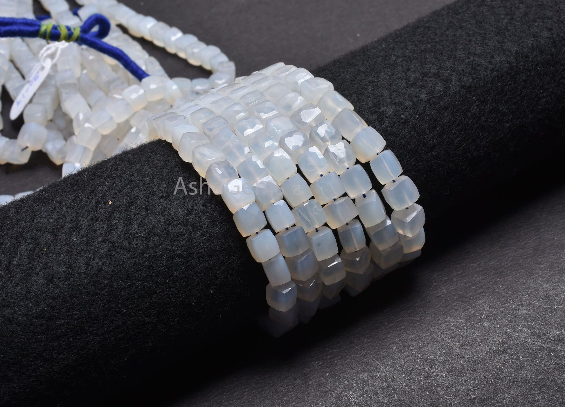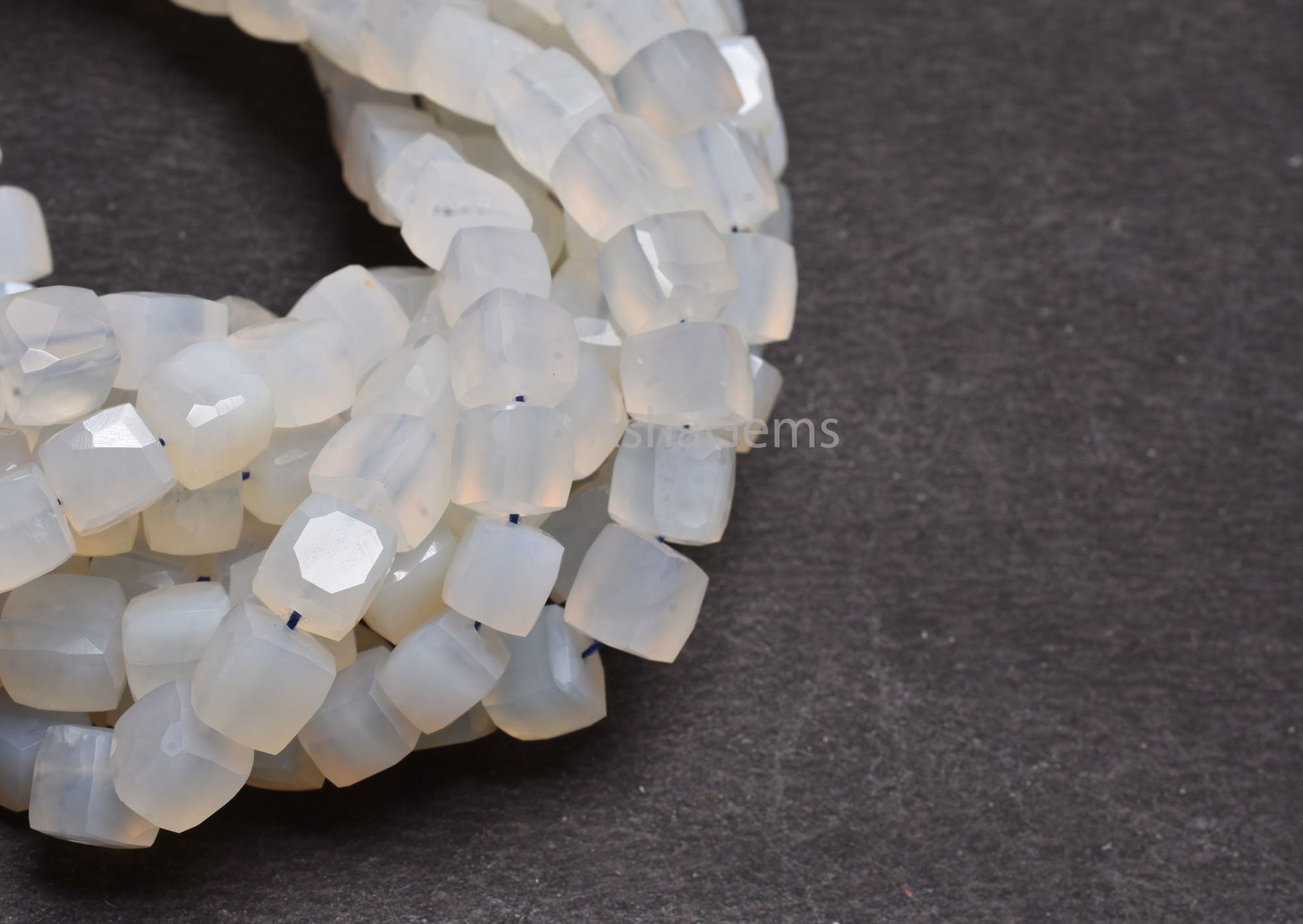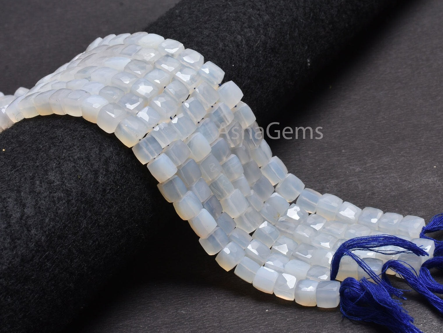 8" Strand White Chalcedony Faceted Cube Gemstone Beads, Natural Chalcedony Indian Cut 3D Cube Box Center Drill Bead Chalcedony Beads Jewelry