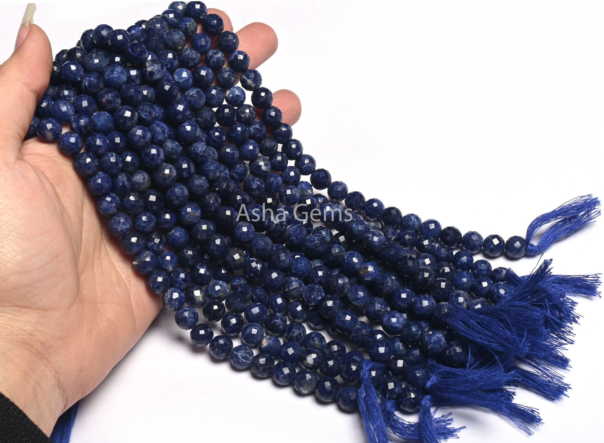 8mm Fine Blue Sodalite Faceted Round Shape Beads, Natural Blue Sodalite Indian Cut Round Ball Gemstone Beads, Sodalite Bead Jewelry Necklace