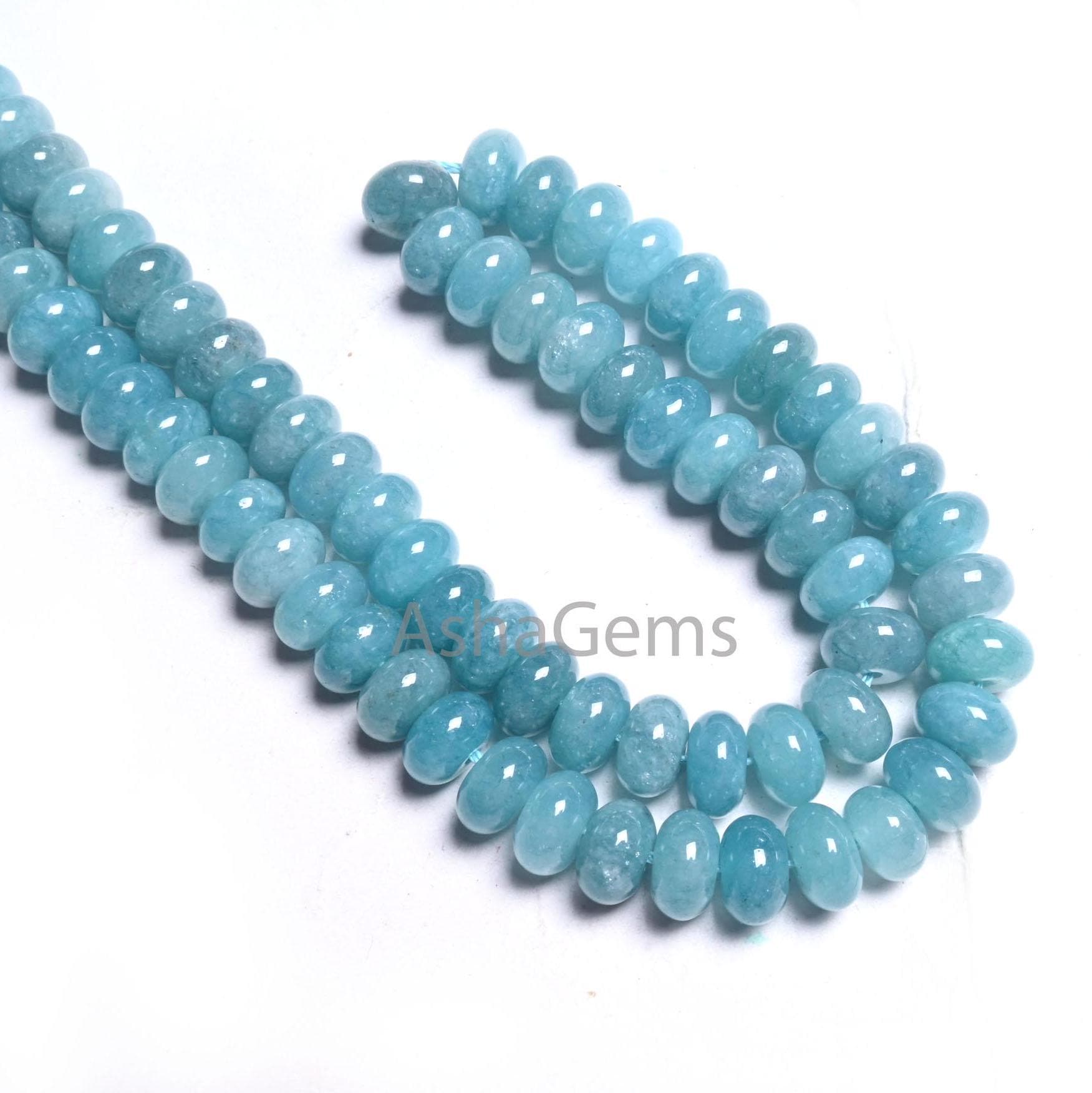 8mm Fine Neon Blue Color Jade Quartz Smooth Rondelle Shape Beads, Off Blue Quartz Plain Gemstone Loose Quartz Bead Jewelry Making Craft SALE