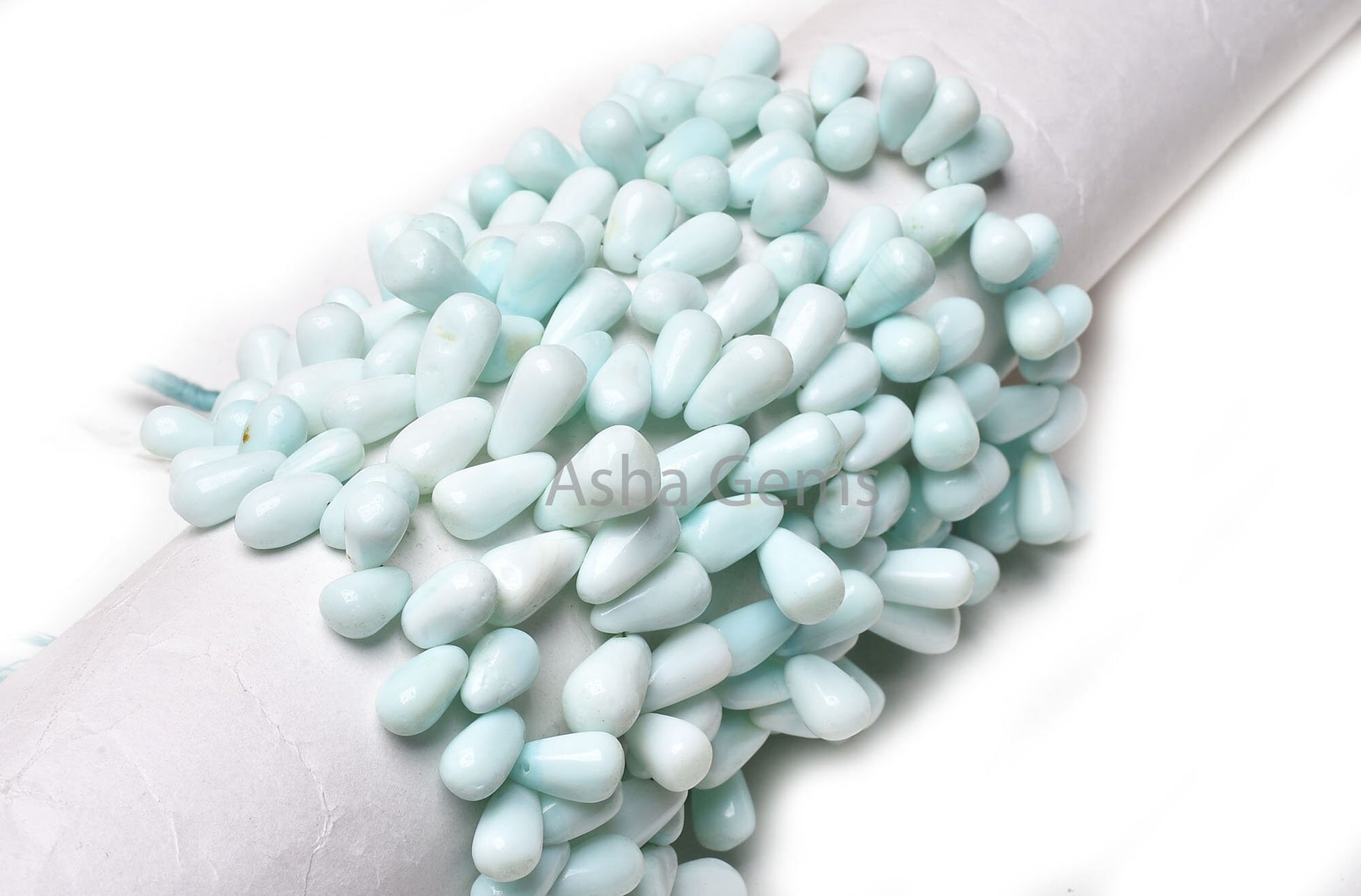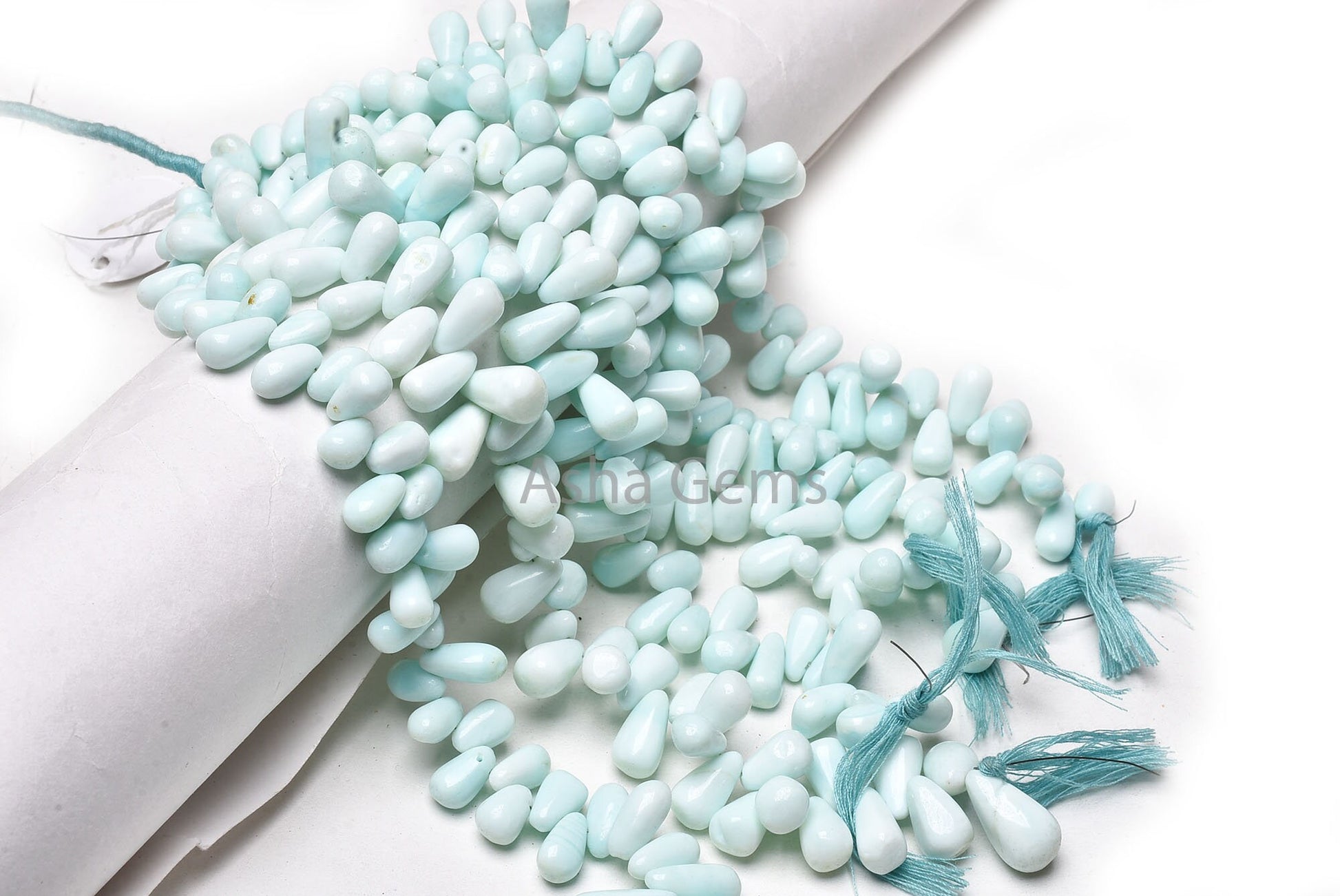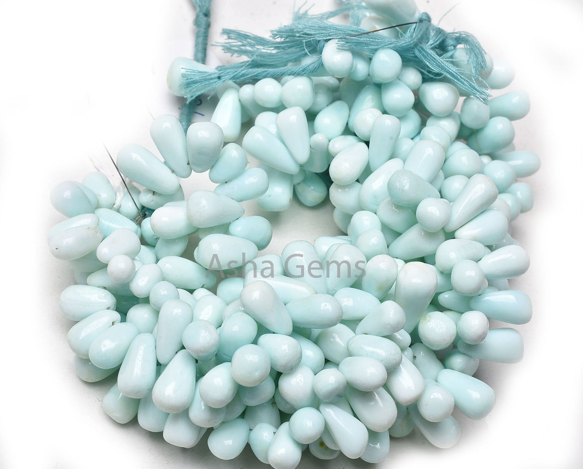 8"Strand Blue Peru Opal Smooth Drops Side Drill Beads, Peruvian Opal Beads Sky Opal Plain Handmade Teardrop Briolette Handmade Gemstone Bead