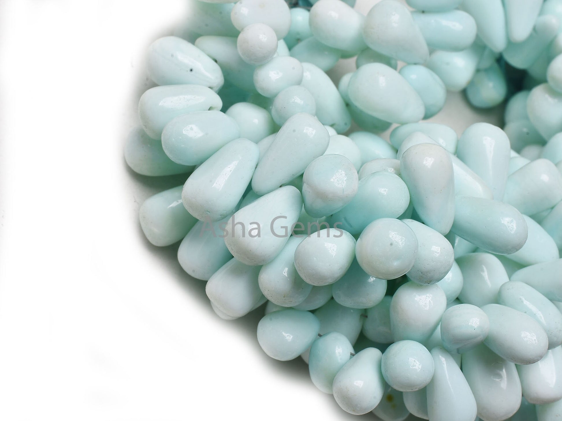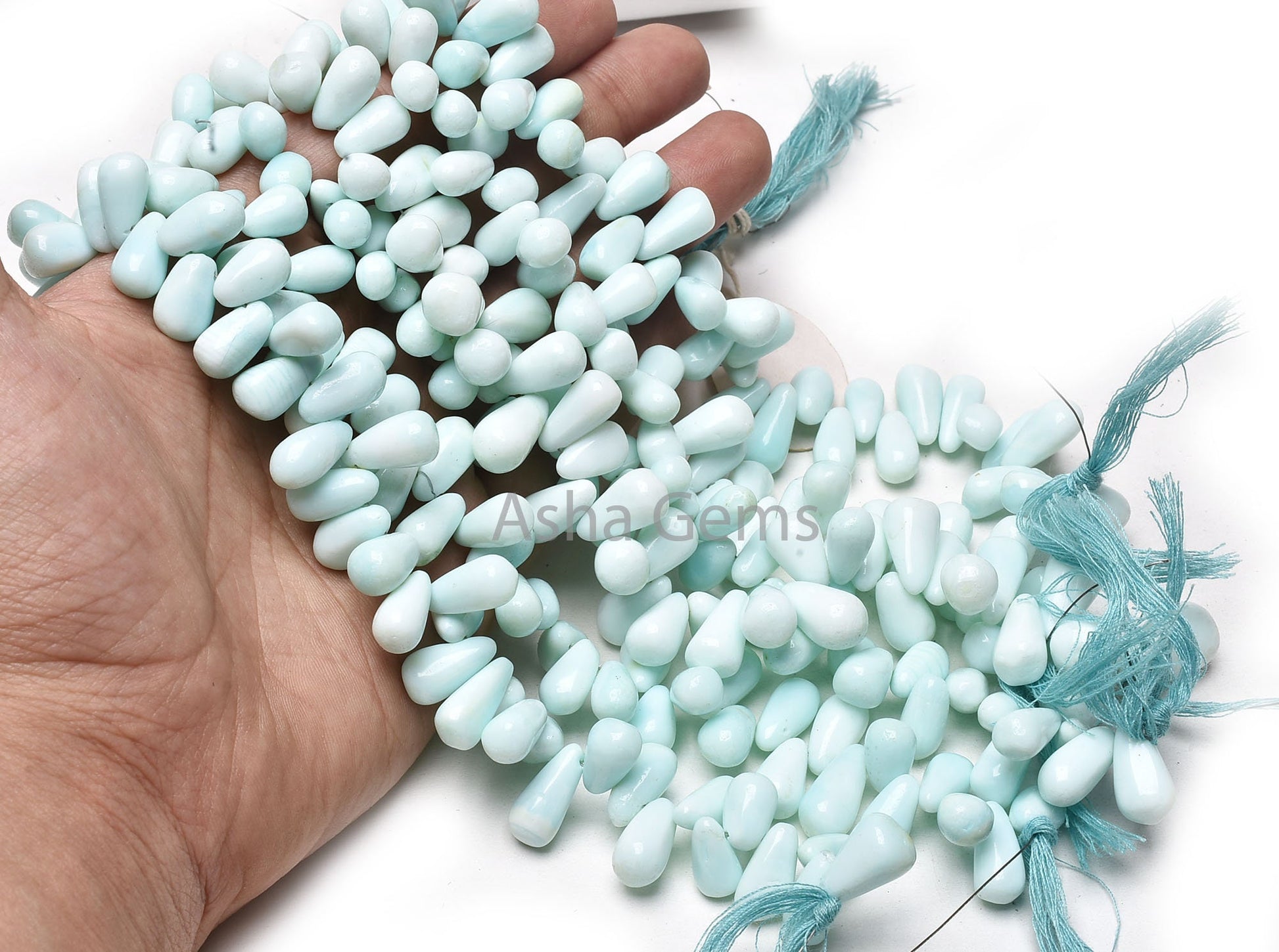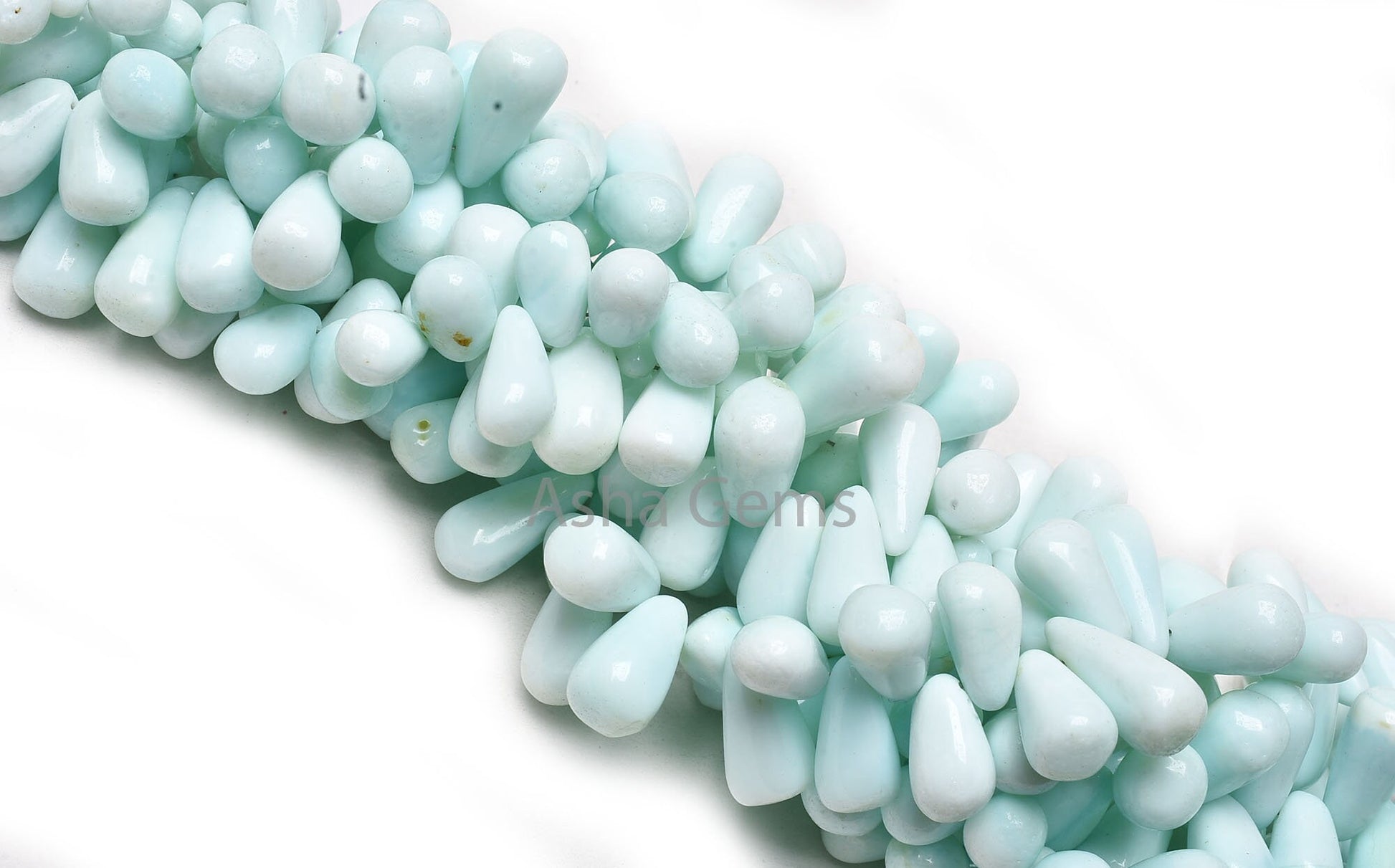 8"Strand Blue Peru Opal Smooth Drops Side Drill Beads, Peruvian Opal Beads Sky Opal Plain Handmade Teardrop Briolette Handmade Gemstone Bead
