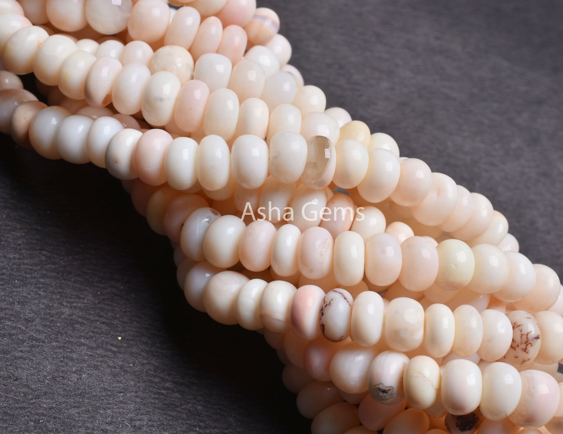 9 mm AAA Off White Light Peach Opal Smooth Rondelle Beads, Off White Opal Plain Handmade Gemstone Beads, Opal Bead Jewelry Making Craft SALE