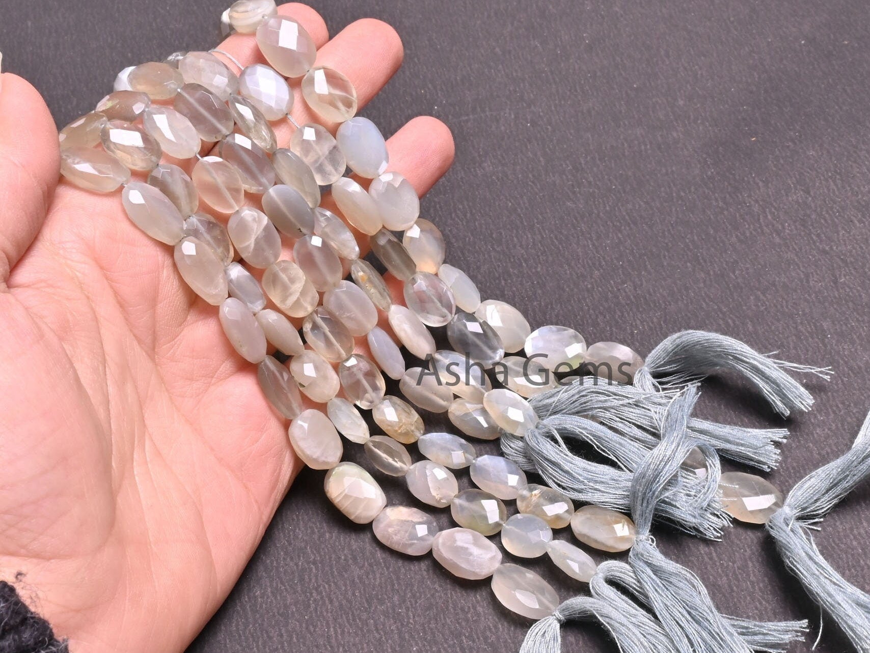 9" Strand Natural Grey Moonstone faceted Indian Cut Oval Gemstone Beads, Moonstone Oval Briolette Beads, grey Moonstone Beads Jewelry Crafts
