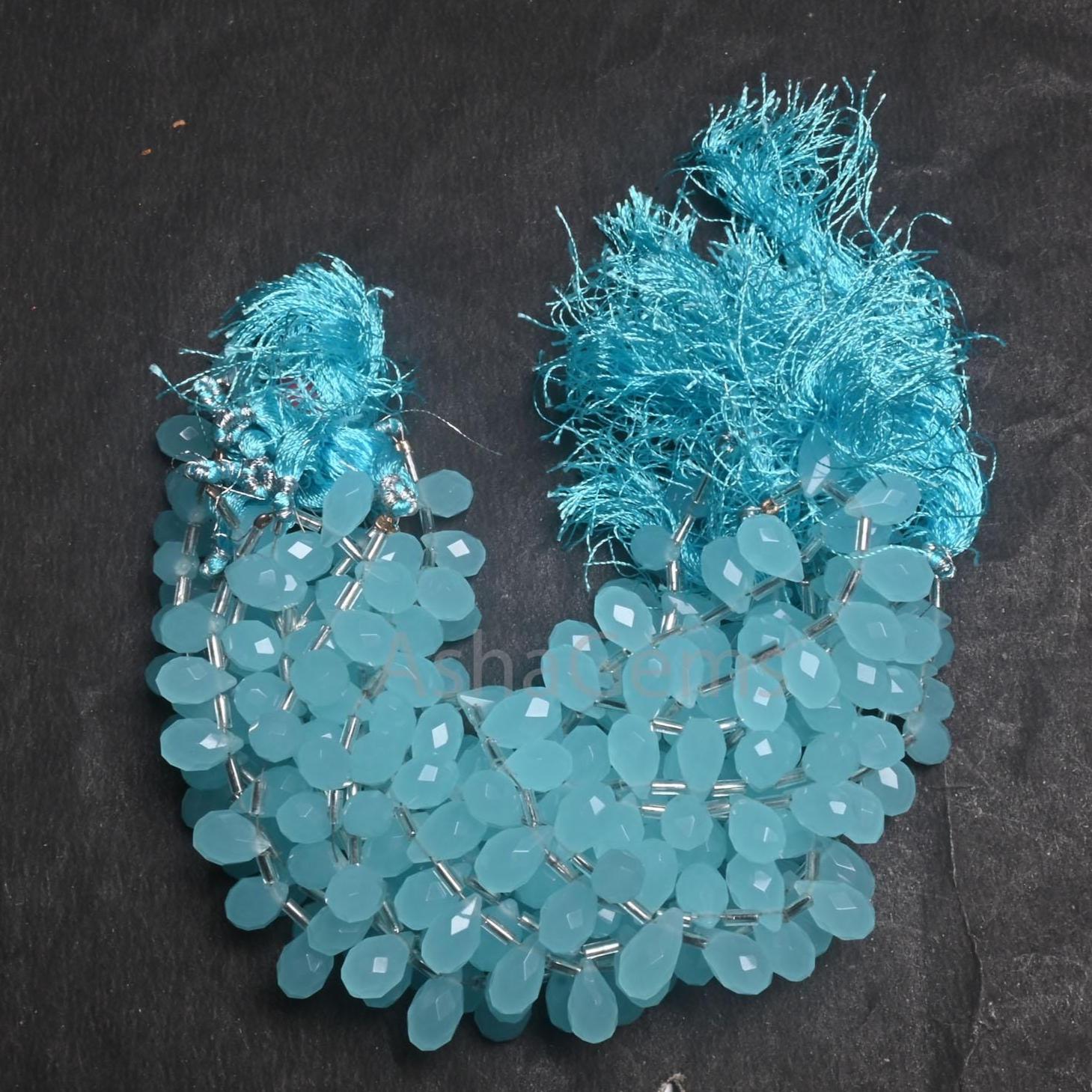 AAA Aqua Chalcedony Hydro Faceted Drops Beads,6.5" Aqua Blue Color Quartz Hydro Teardrop Briolette Side Drill bead Jewelry making Craft SALE