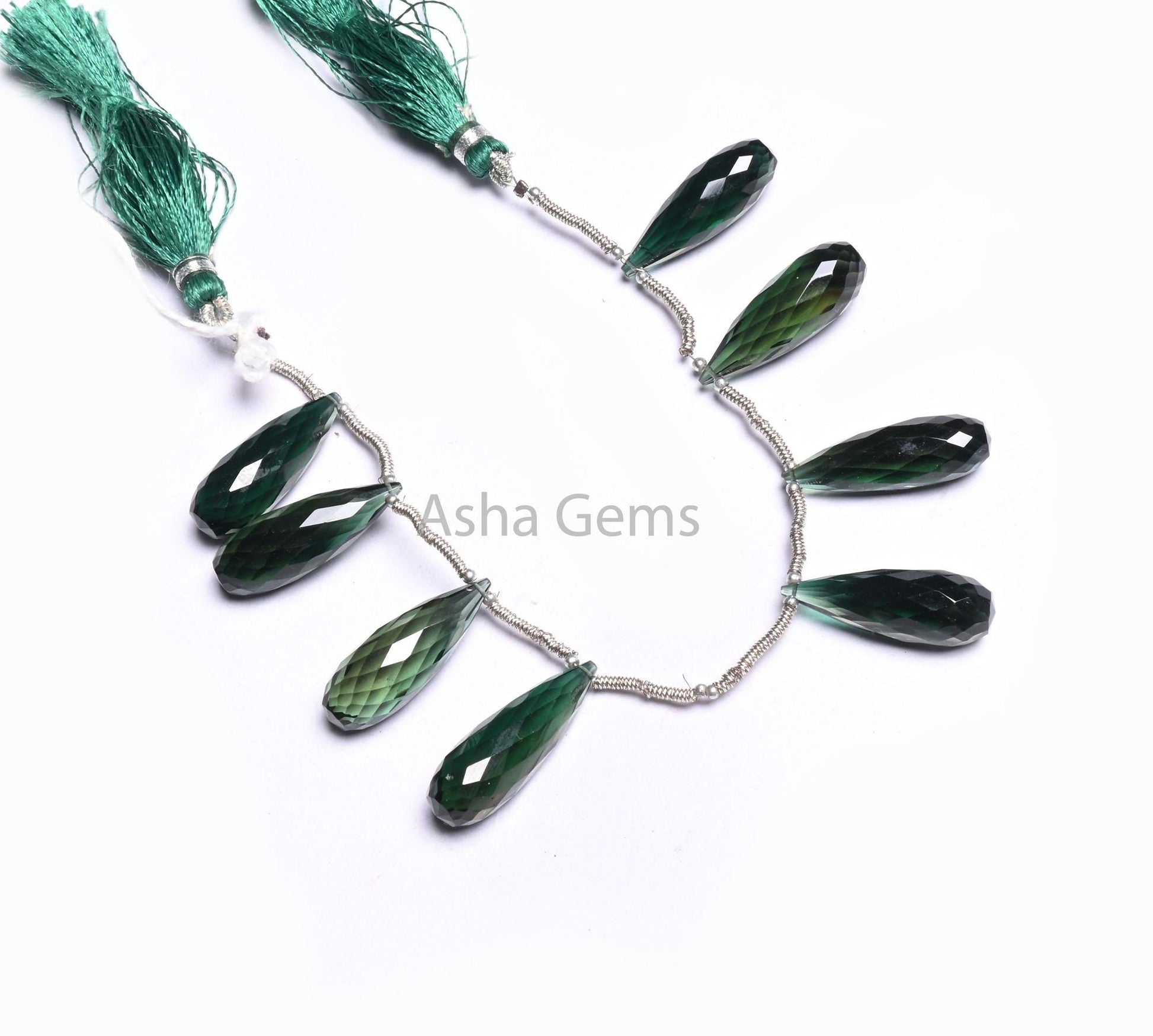 AAA Bottle Green Hydro Fancy Long Drops Faceted Gemstone Beads,8.5x24-9x28 mm Green Hydro Teardrop Briolette Machine Cut Beads Jewelry Craft