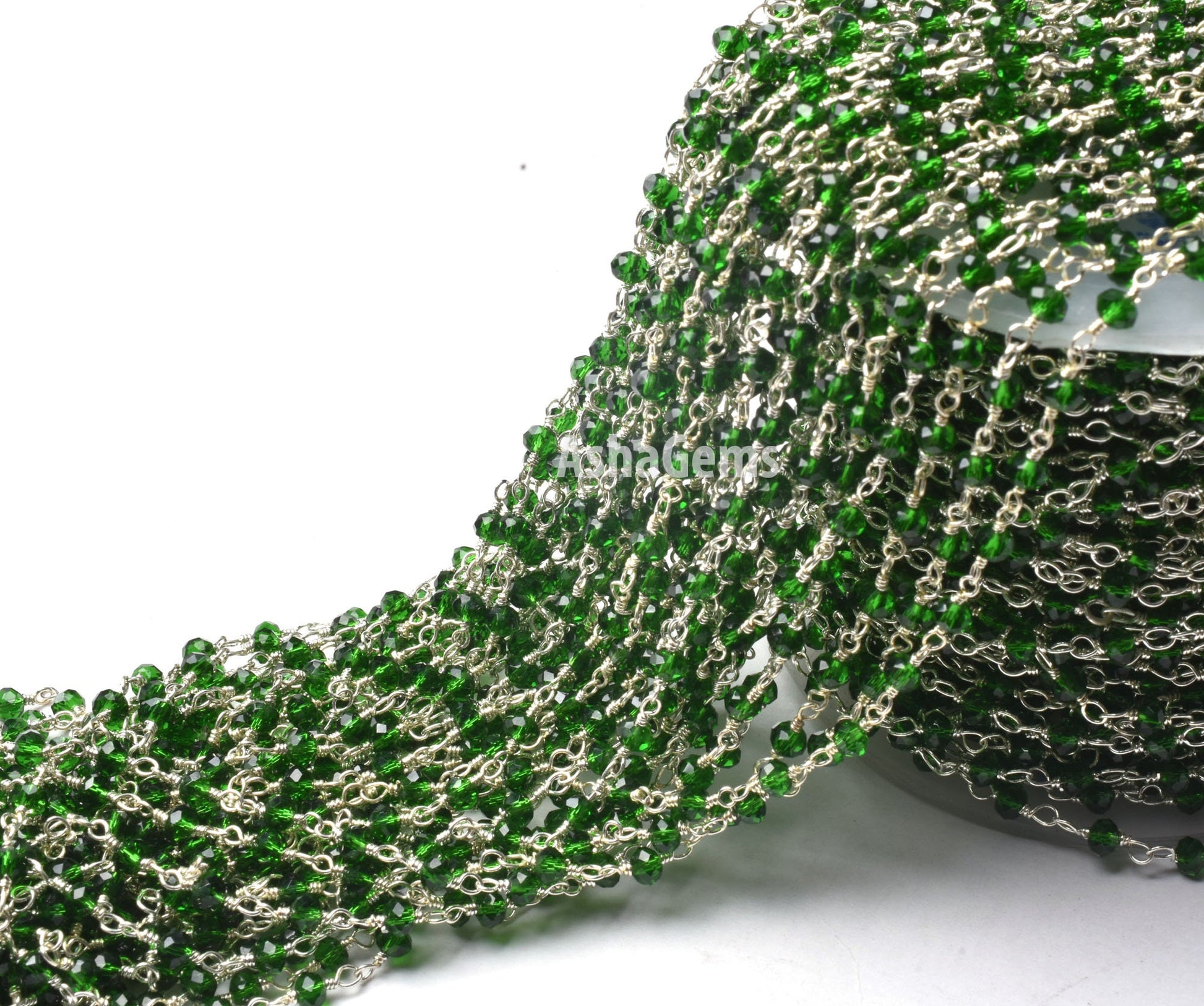 AAA Chrome Diopside Hydro Faceted Rondelle Beads Rosary Chain Silver Plated Wire Wrap handmade Chain Jewelry Making Necklace Chains 3-3.5 mm