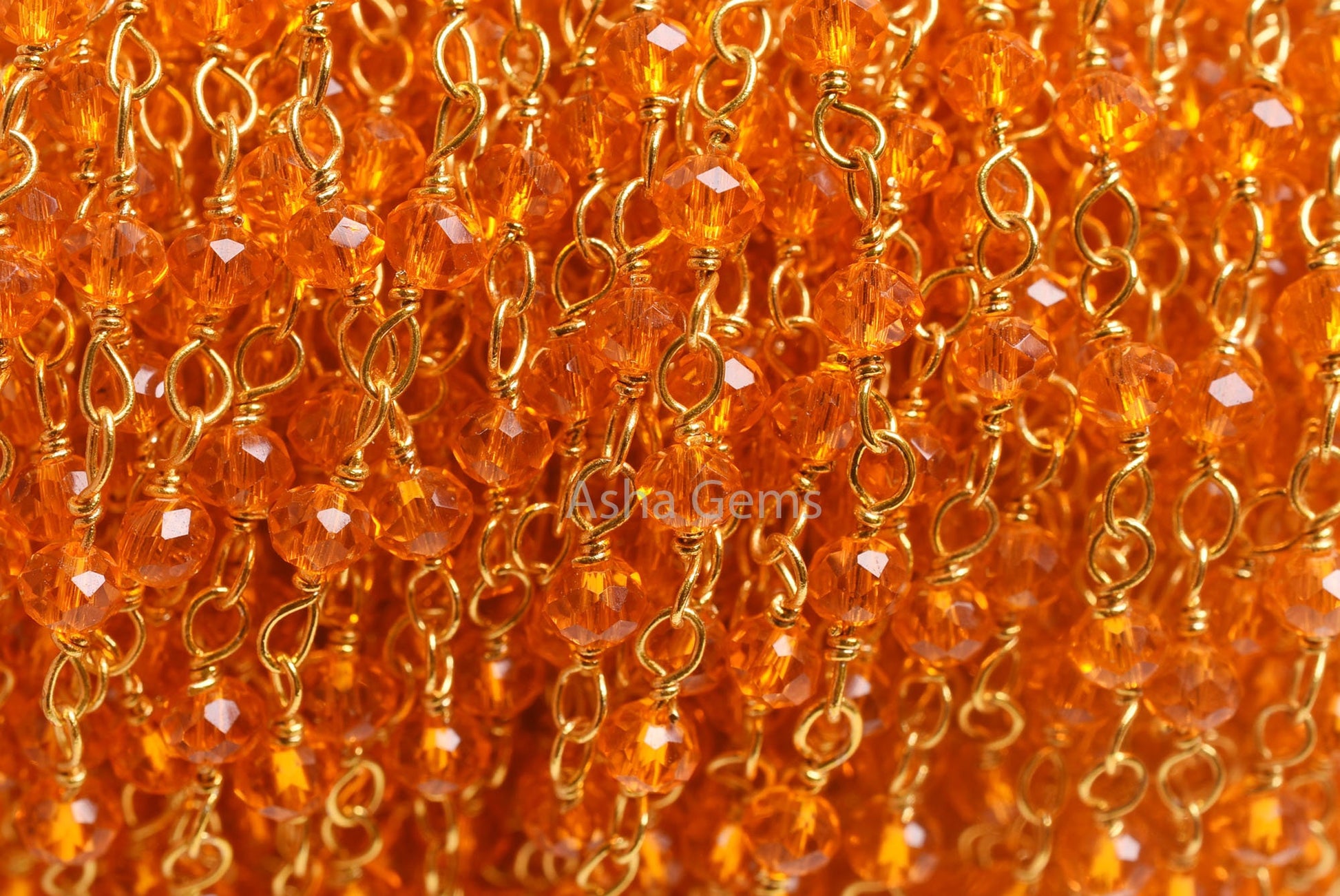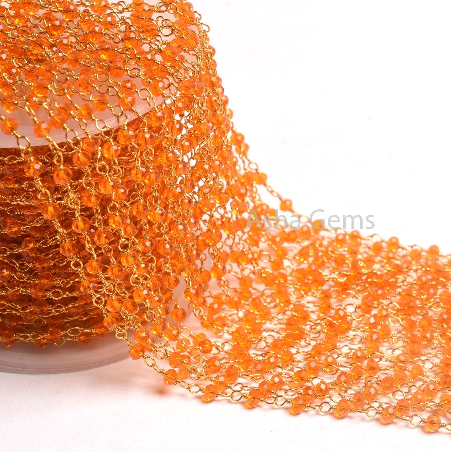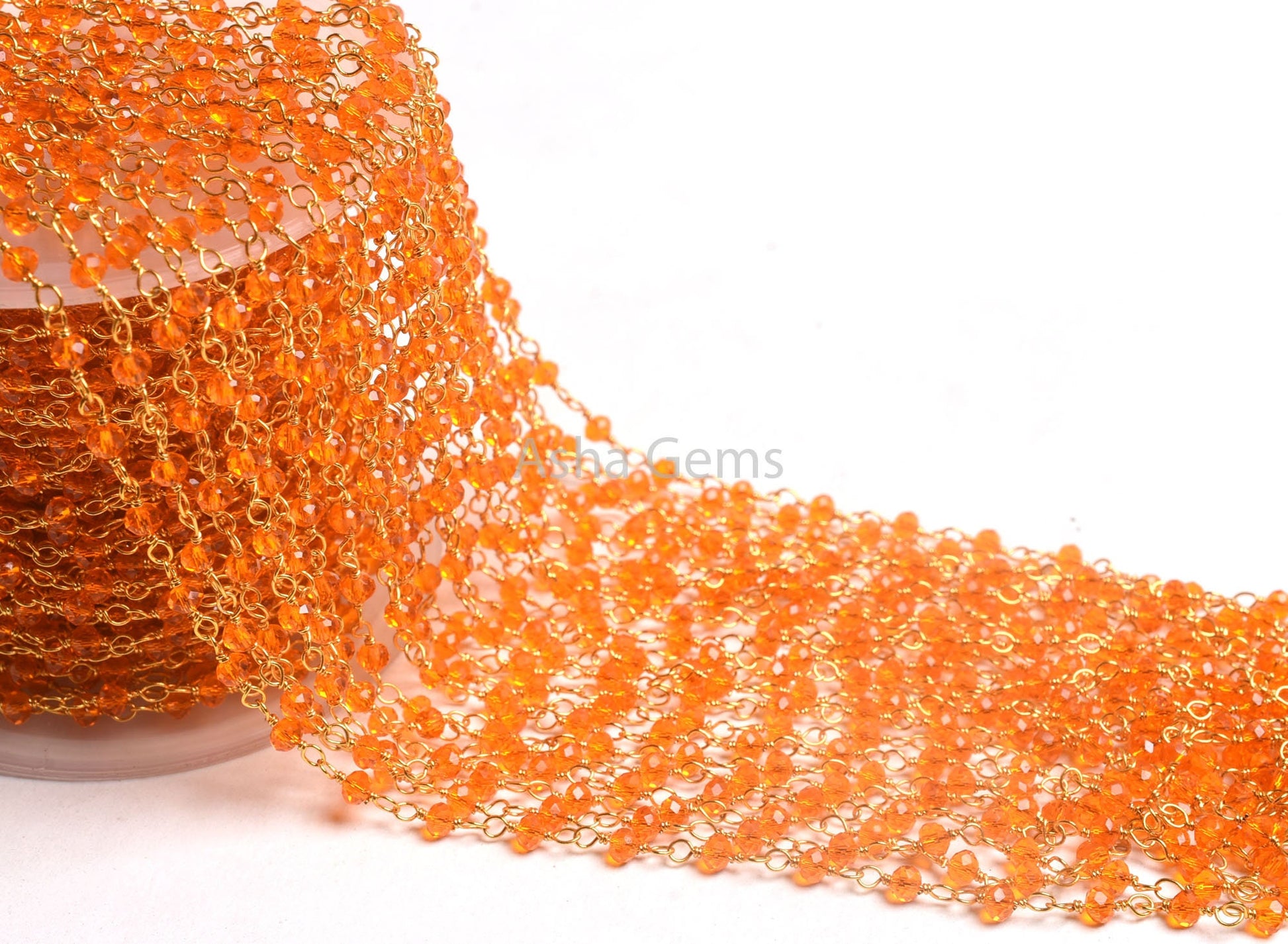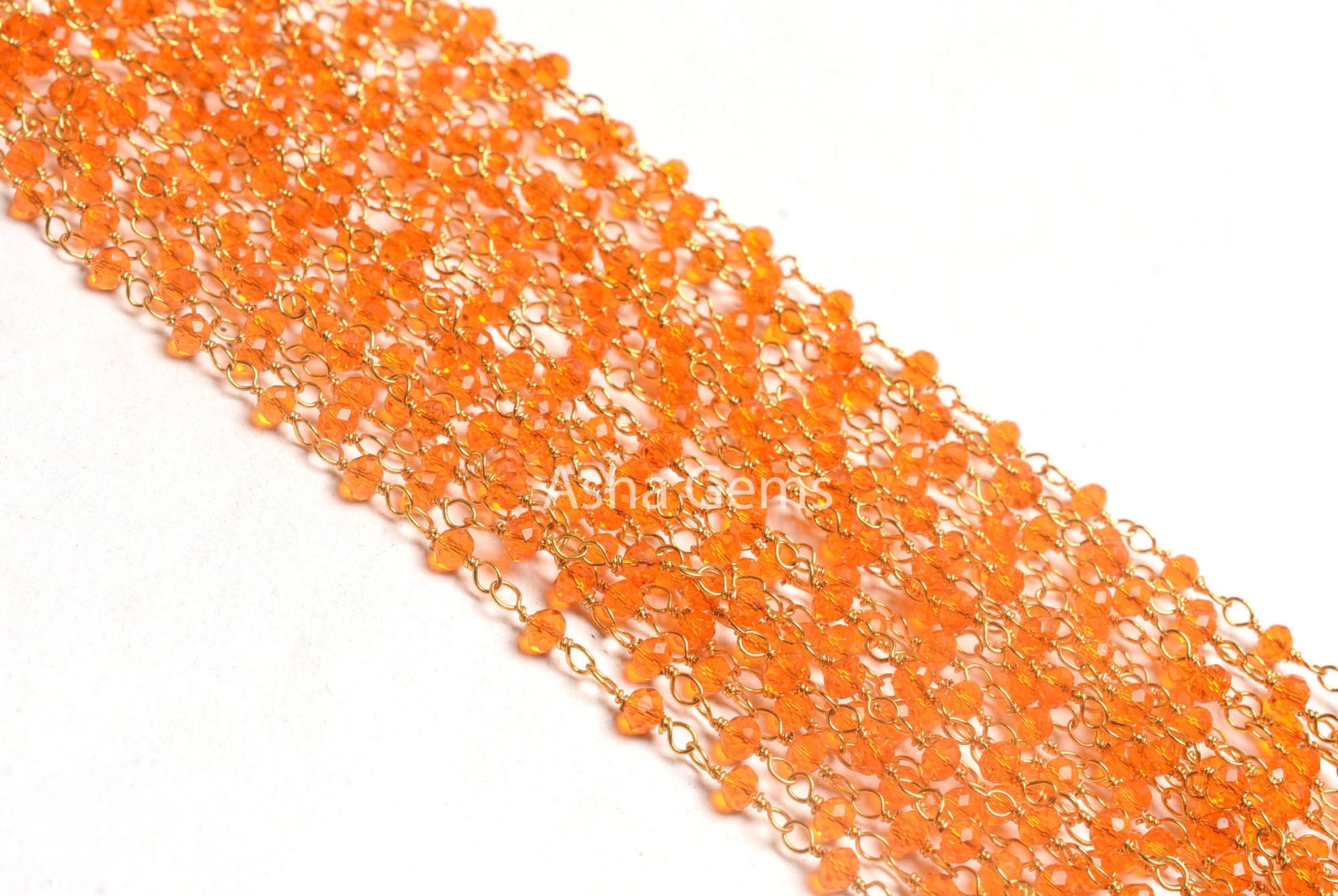 AAA Fanta Orange Hydro Faceted Rondelle Beads Rosary Chain,3-3.5 mm Gold Plated wire Wrap Handmade Rosary Chain By Feet Jewelry making Craft