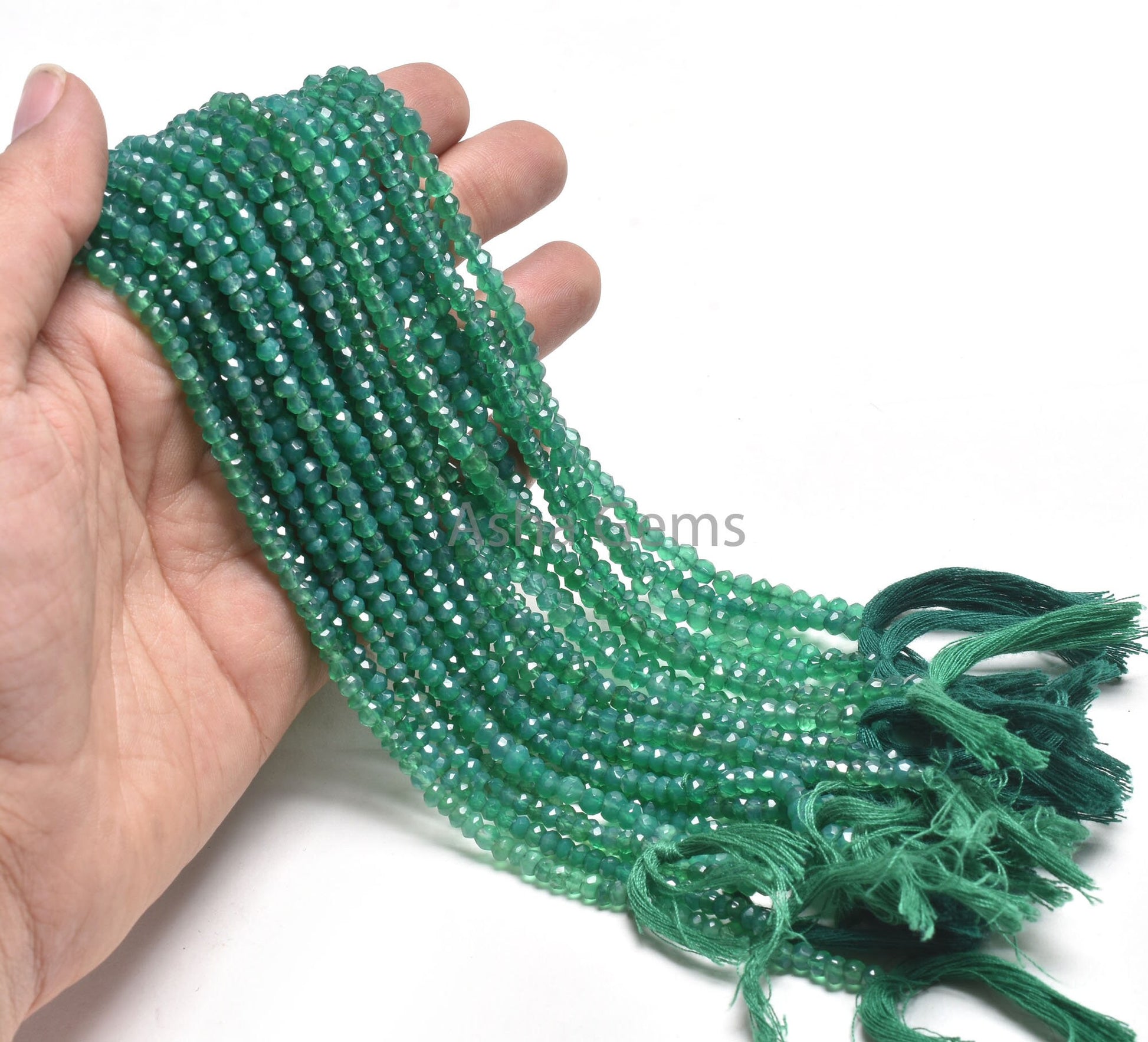 AAA Green Onyx Indian Machine Cut Gemstone Loose Beads,13"Strand Green Onyx Faceted Rondelle Shape Beads, Green Onyx Bead Jewelry Craft SALE