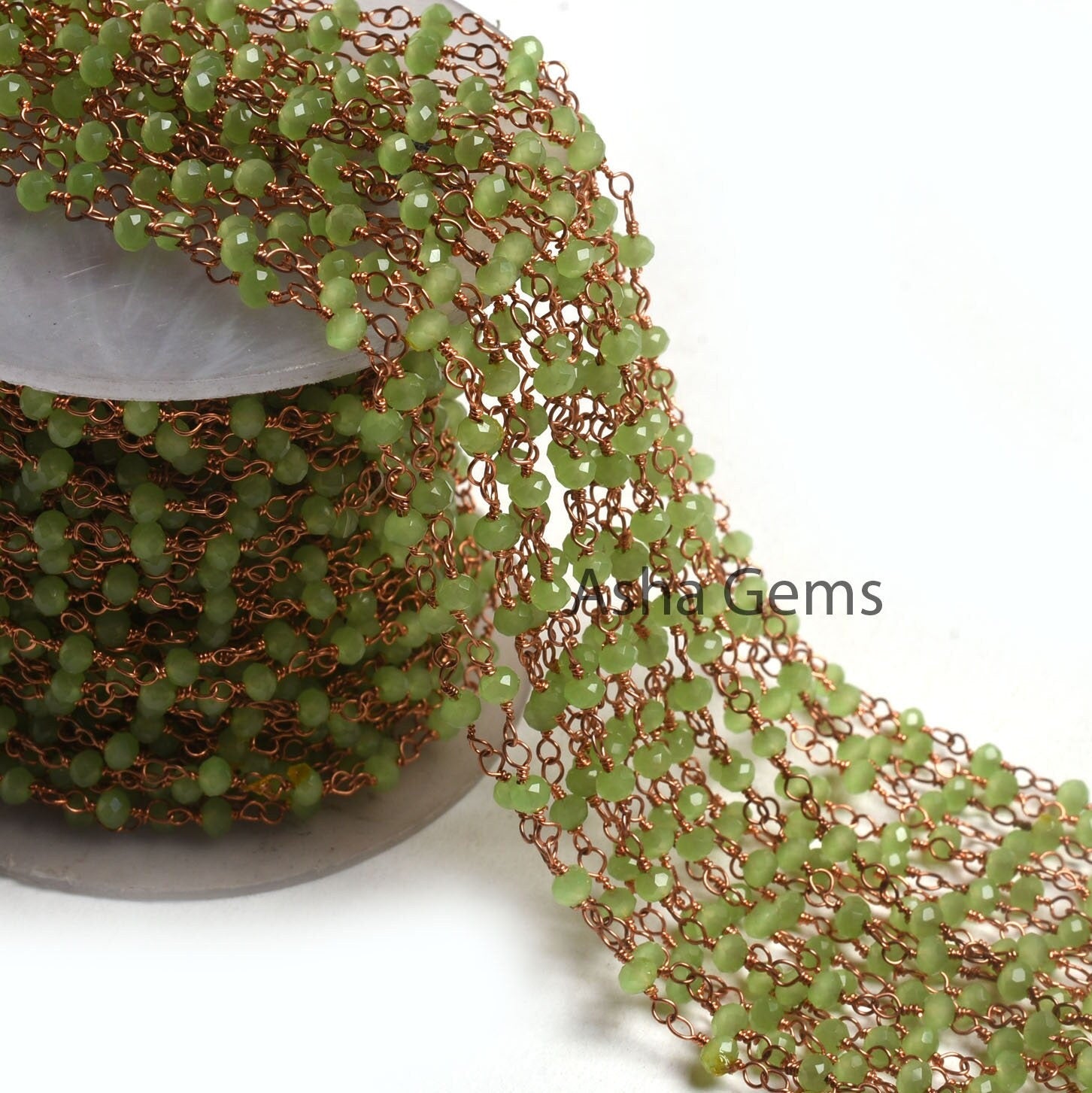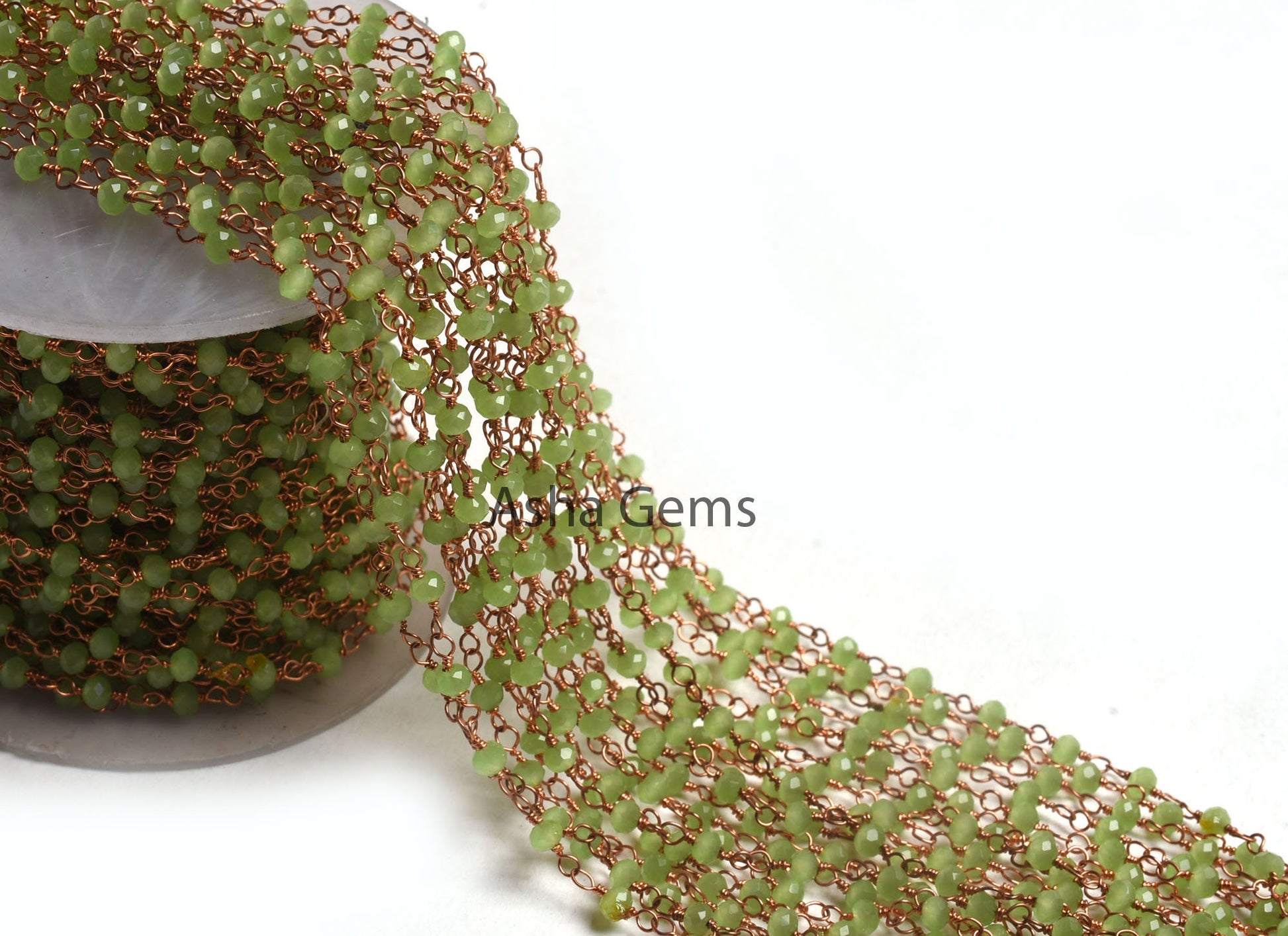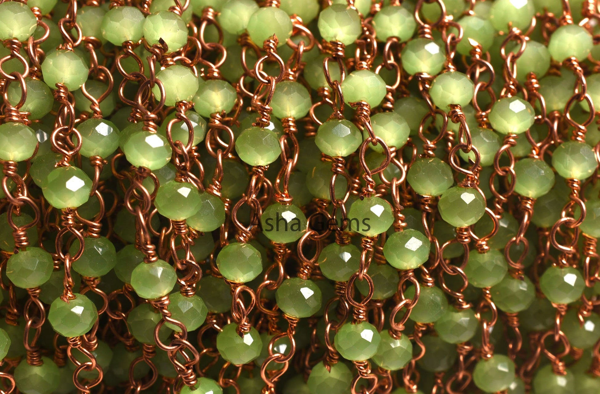 AAA Green Quartz Hydro Faceted Rondelle Beads Rosary Chain By Feet Rose Gold Plated Copper Wire Wrap Beaded handmade Chains Necklace Jewelry