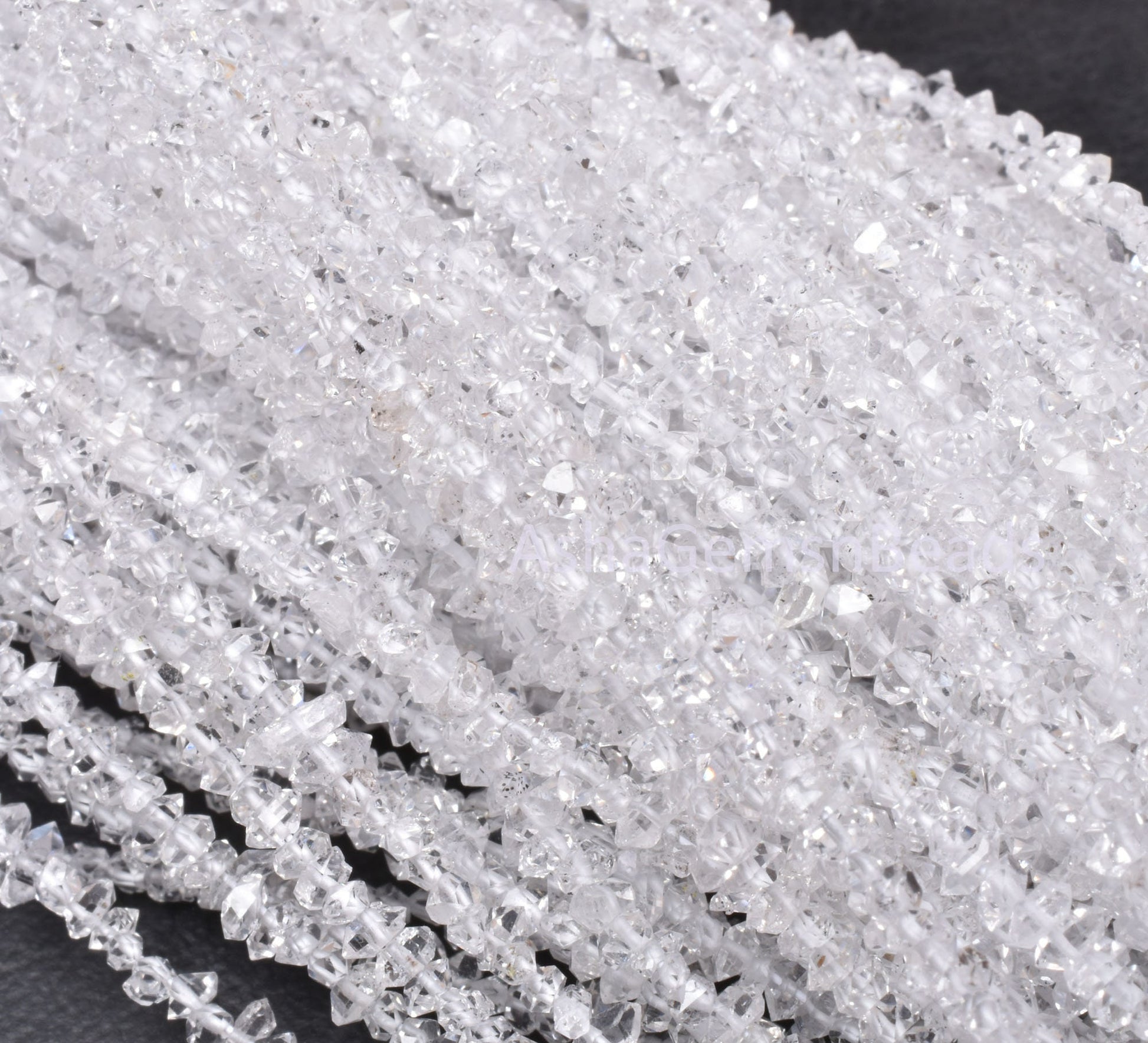 AAA Herkimer Diamond Nugget Shape Beads,16 inch, Natural White Diamond Quartz Polish Rough Faceted Beads,13 Carat Strand, Tiny Raw Bead SALE