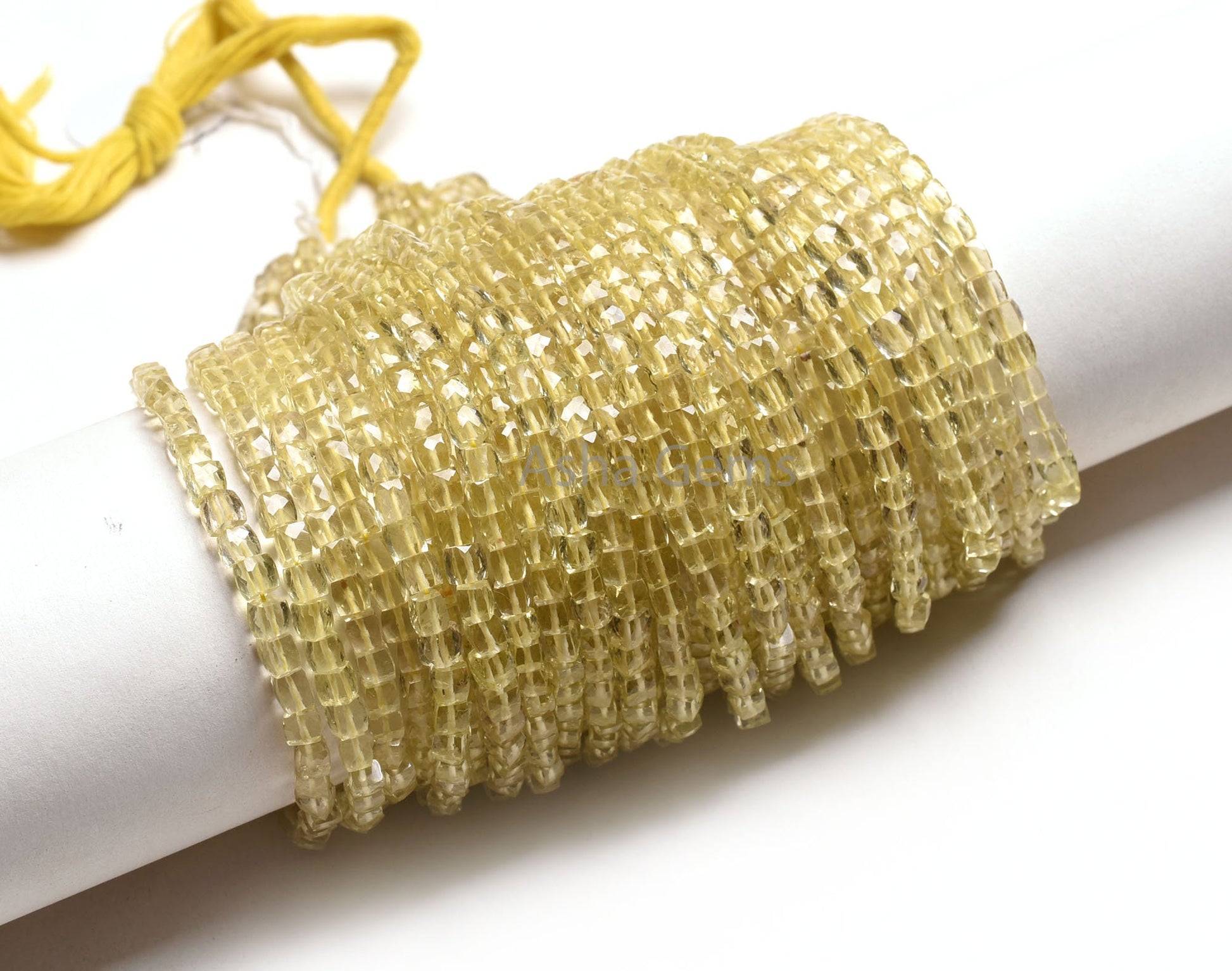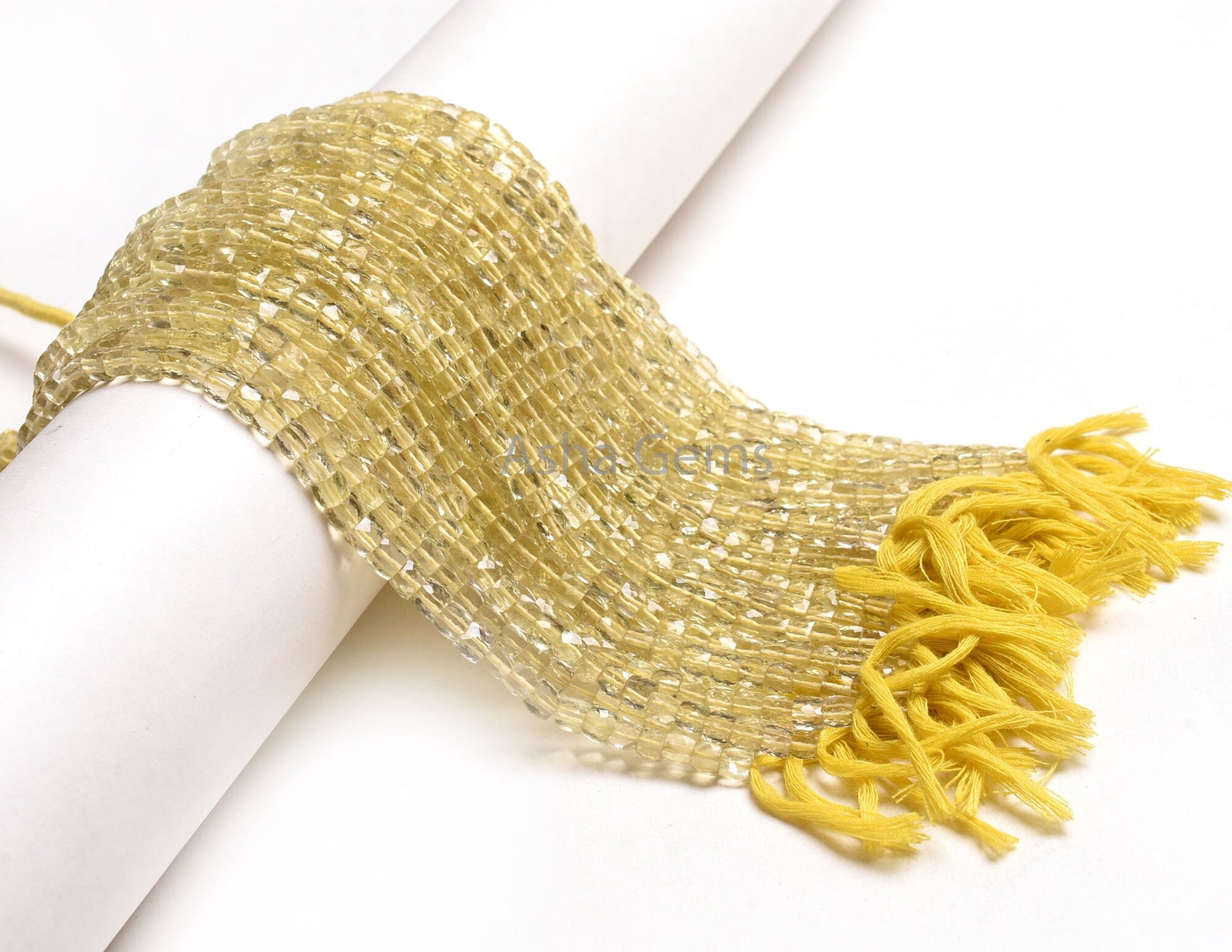 AAA Lemon Quartz Faceted 3D Cube Box Beads,9" Strand Natural Yellow Lemon Cube Gemstone Beads, Tiny Lemon Quartz Box Bead Jewelry Craft SALE