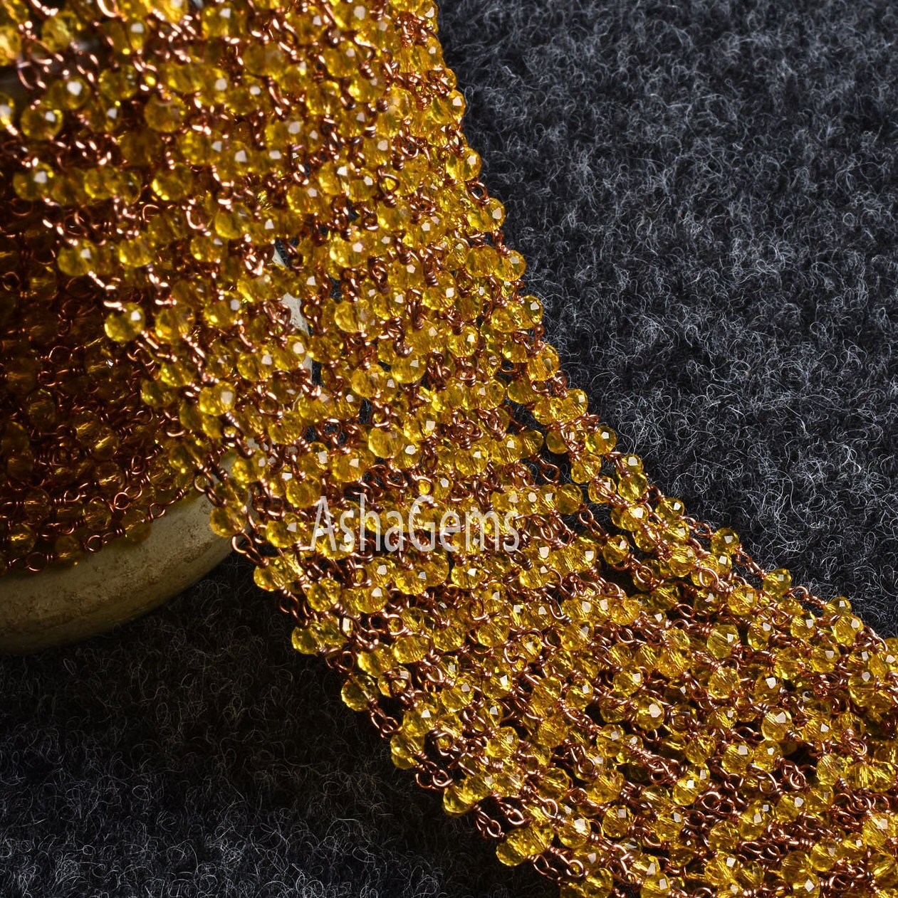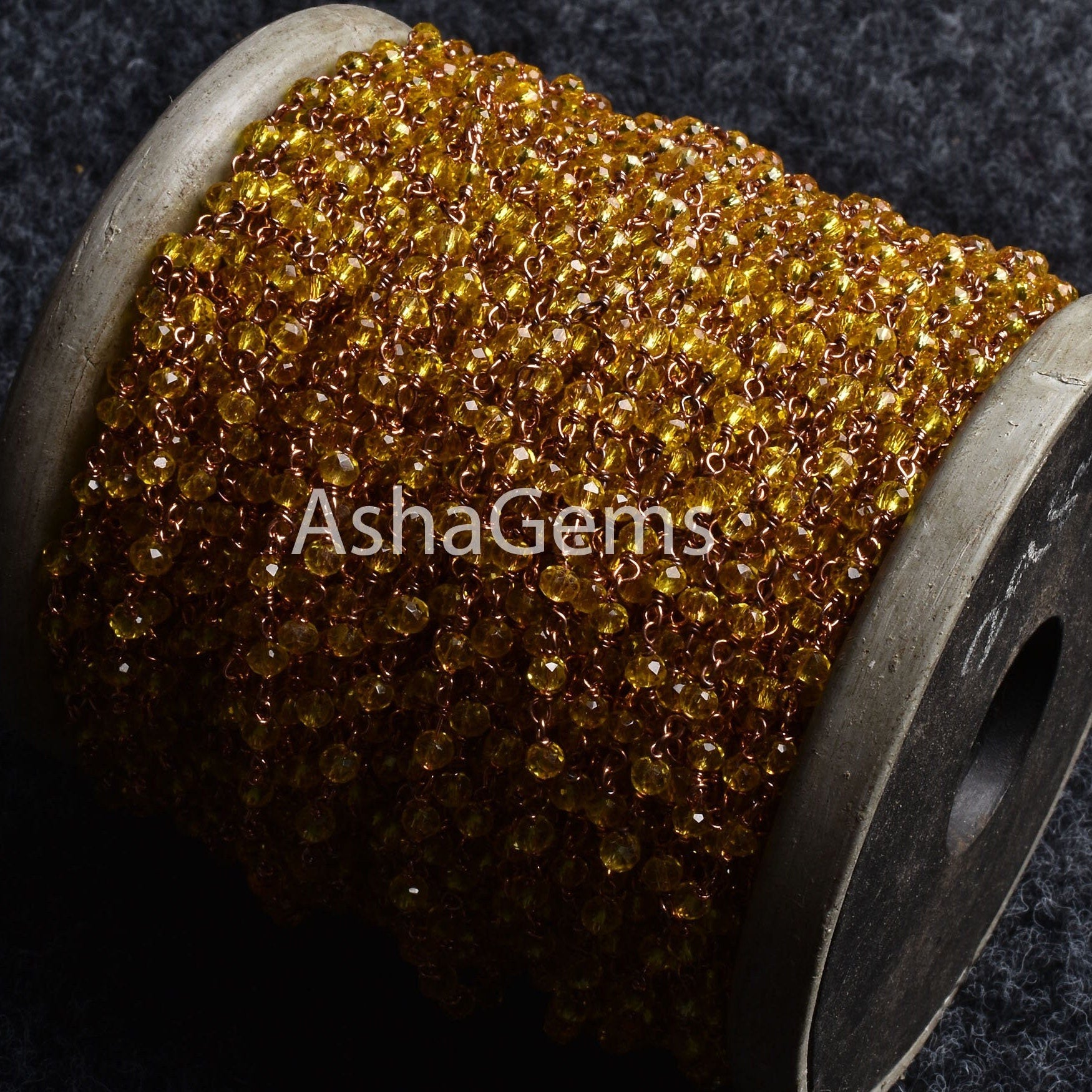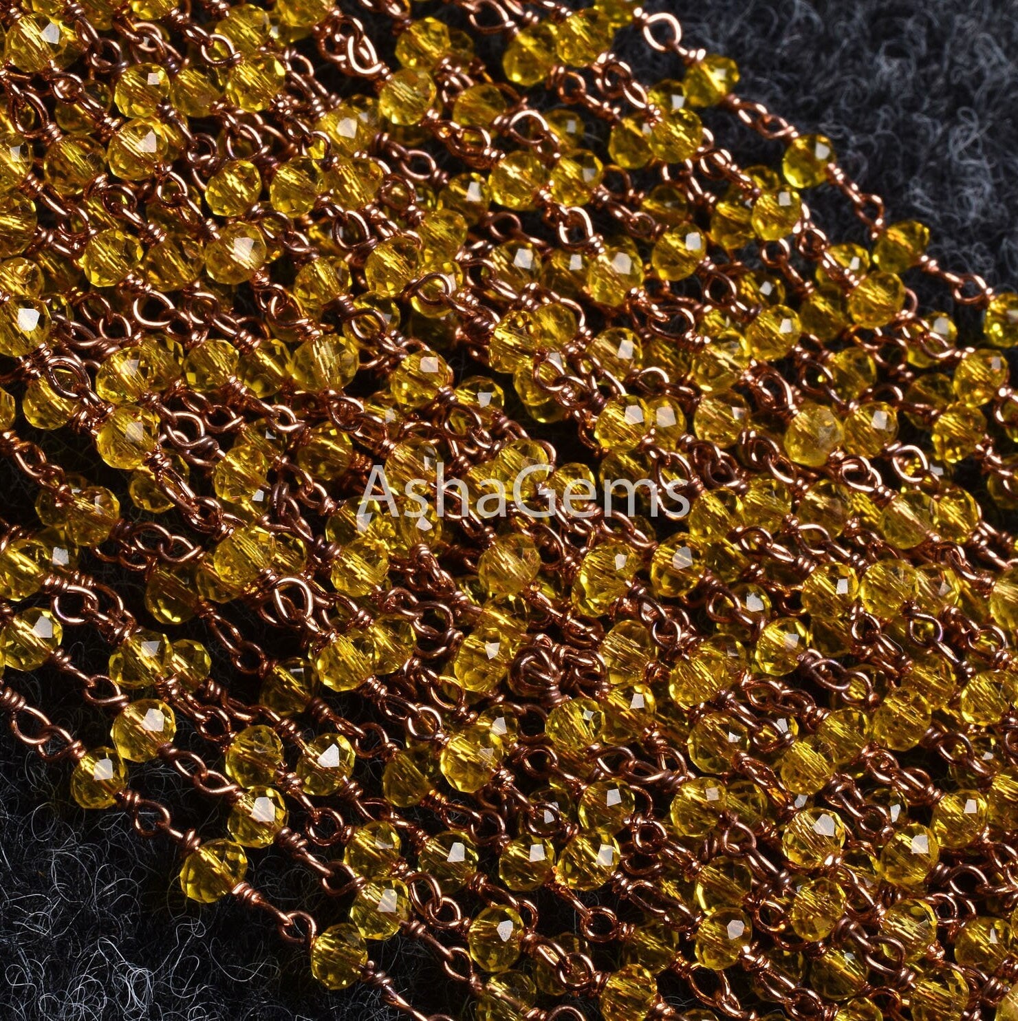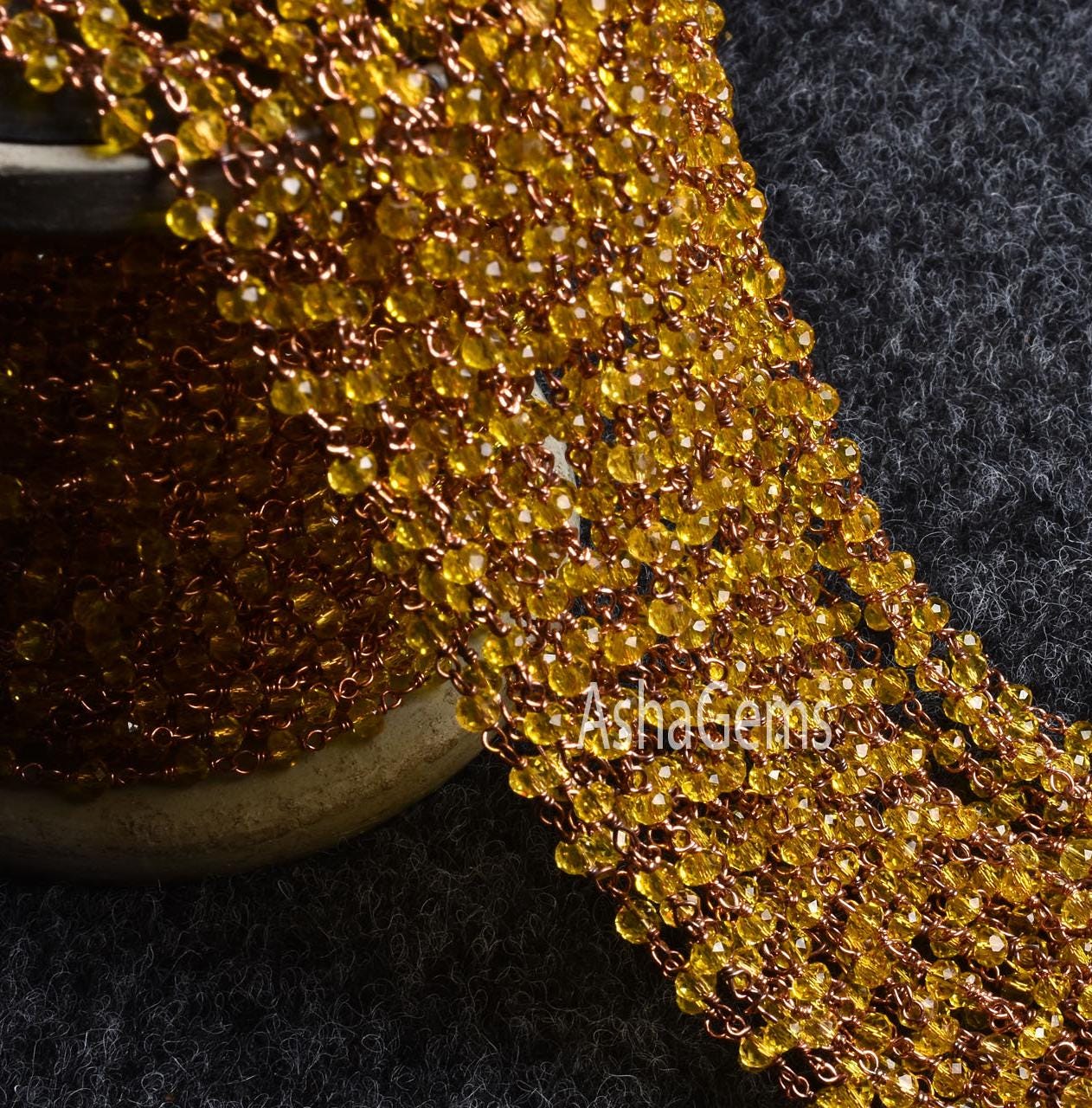 AAA Lemon Quartz Hydro Faceted Beads Rosary Chain Silver Gold Black, Copper Plated Chain handmade Beaded Rondelle Rosary Chains Jewelry SALE