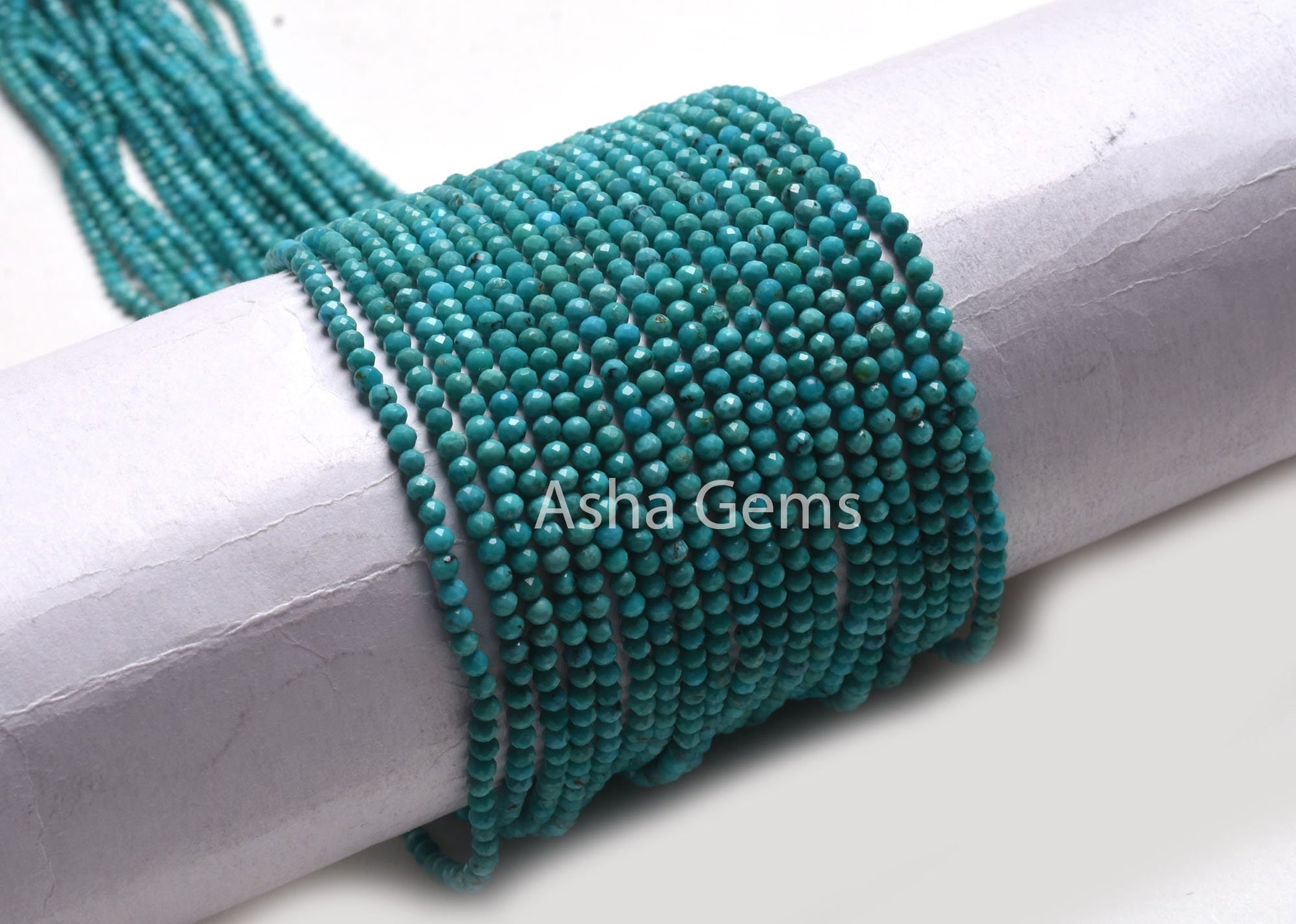 AAA Natural Arizona Turquoise Micro Cut Gemstone Beads,2.5 mm American Turquoise Machine Cut Rondelle Faceted Beads,13" Blue Turquoise Beads