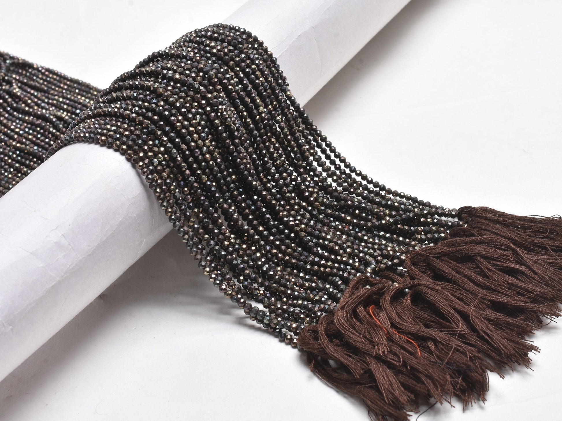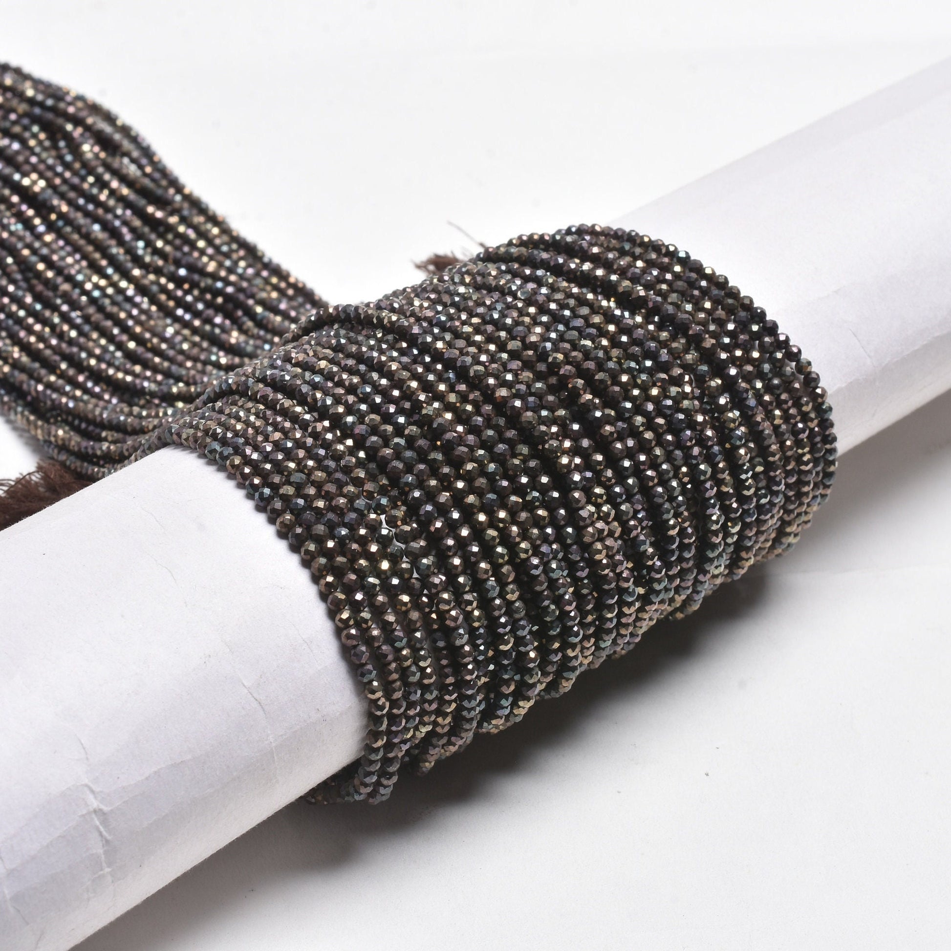 AAA Natural Black Spinal Copper Mystic Coated Micro Cut Beads,2.5mm Spinel Machine Cut Faceted Rondelle Beads, Spinel Tiny Bead Jewelry SALE