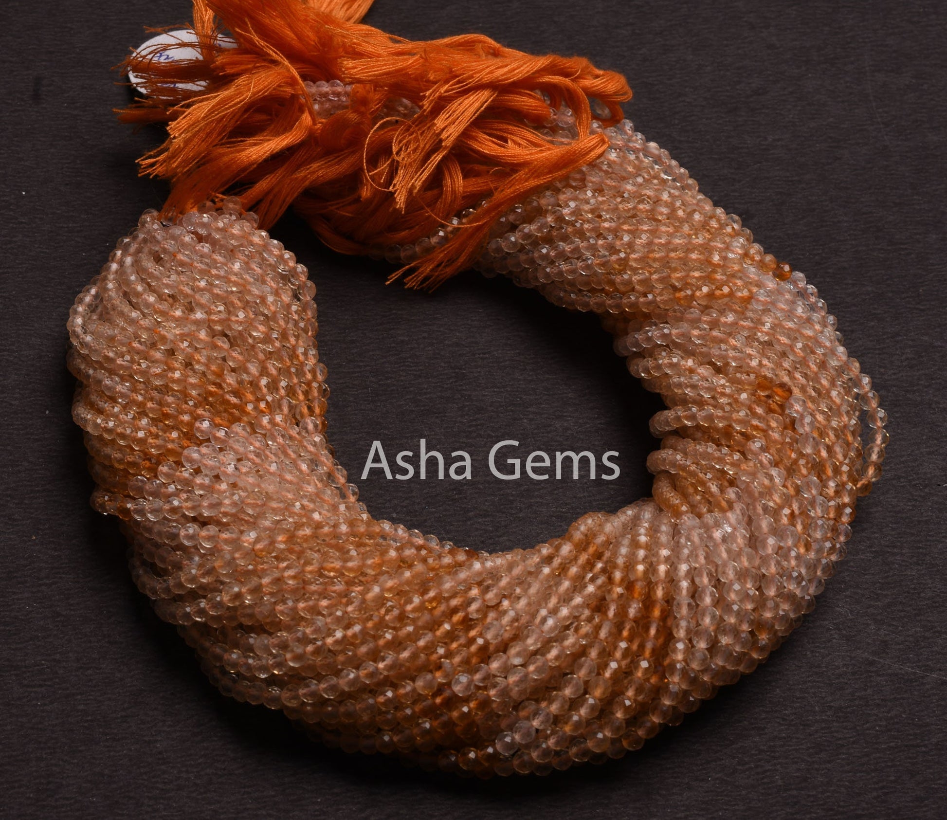 AAA Natural Citrine Quartz Micro Cut Gemstone Beads,3.5mm Shaded Yellow Citrine Machine Cut Faceted Rondelle Beads Citrine Bead Jewelry SALE