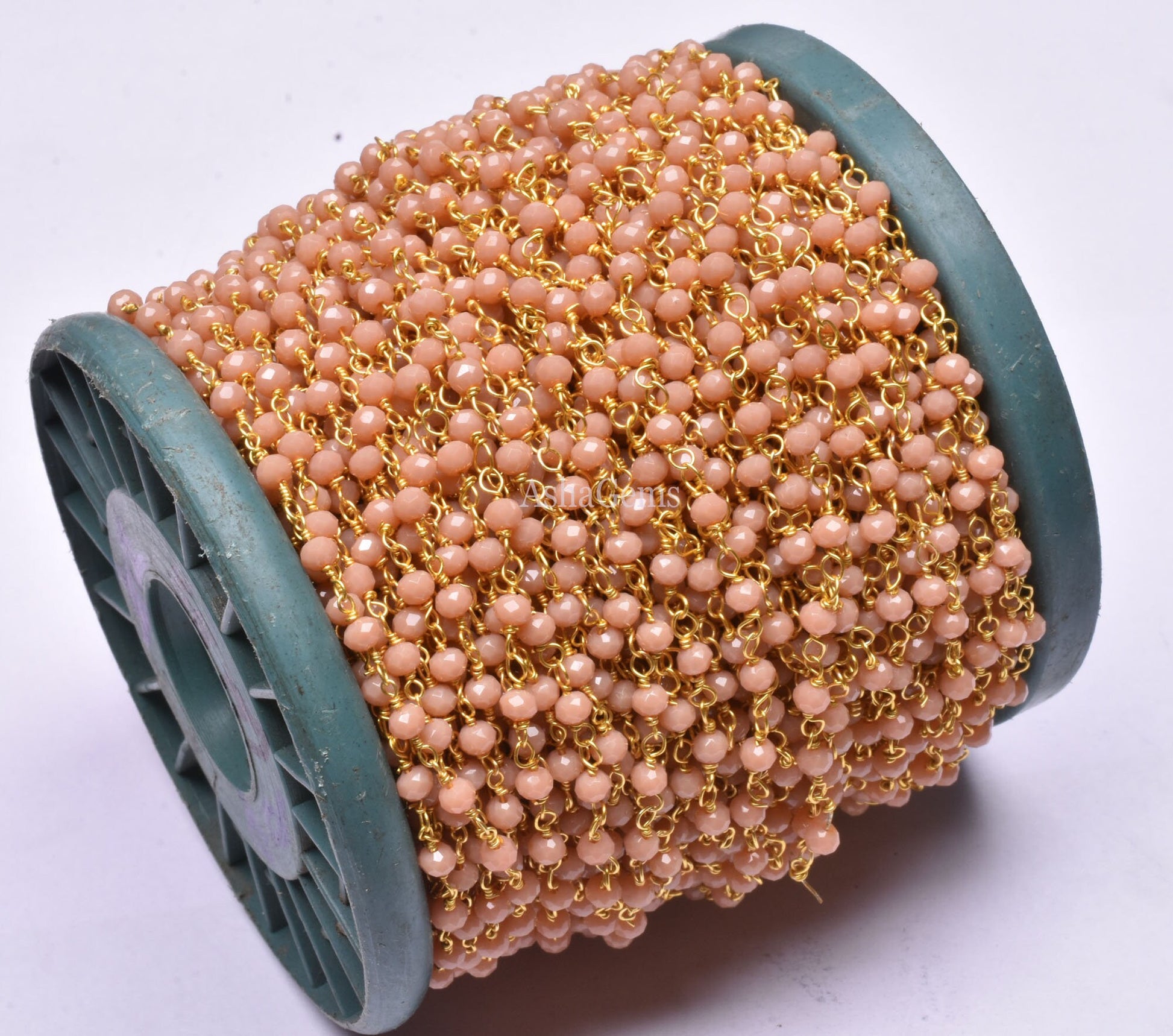 AAA Peach Moonstone Hydro Faceted Rondelle Beads Rosary Chain Gold Plated Wire Wrap Beaded handmade Chain Rosary Jewelry making Necklace 3mm