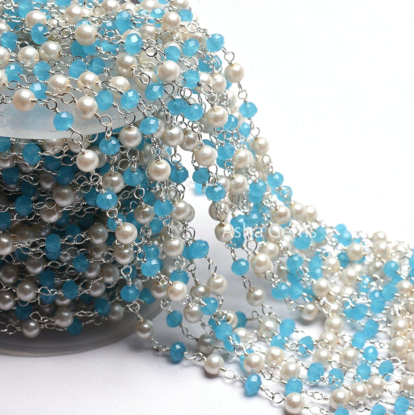 AAA Pearl Blue Chalcedony Hydro Faceted Rondelle Beads Chain Rosary Chain Silver Plated Wire Wrap Multi Color Beads Handmade Chains Jewelry