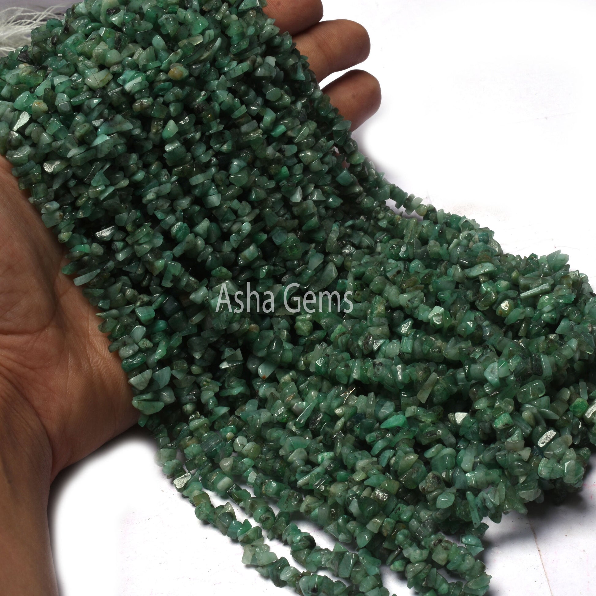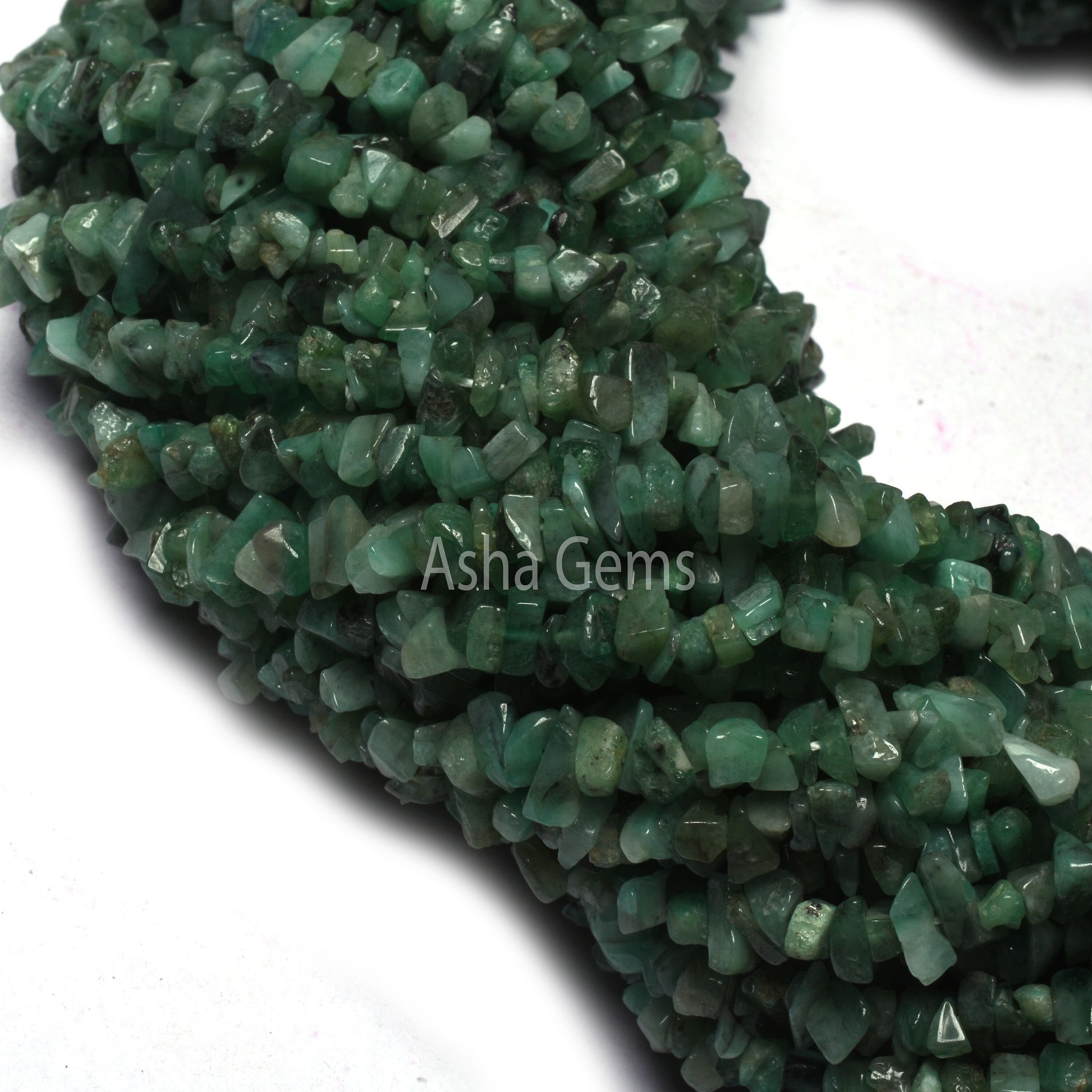 AAA Quality 34" Strand Natural Green Emerald Uncut Chips Raw Gemstone Beads, Green Emerald Gemstone Rough Smooth Tiny Nuggets Beads, Emerald