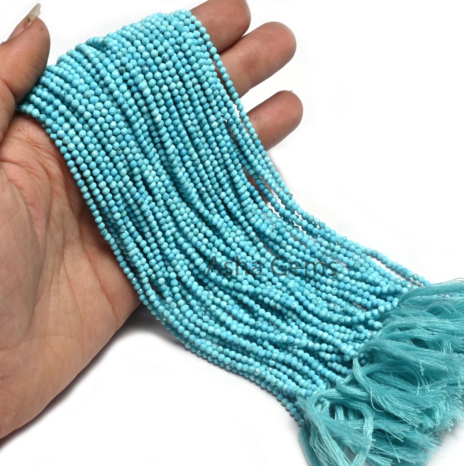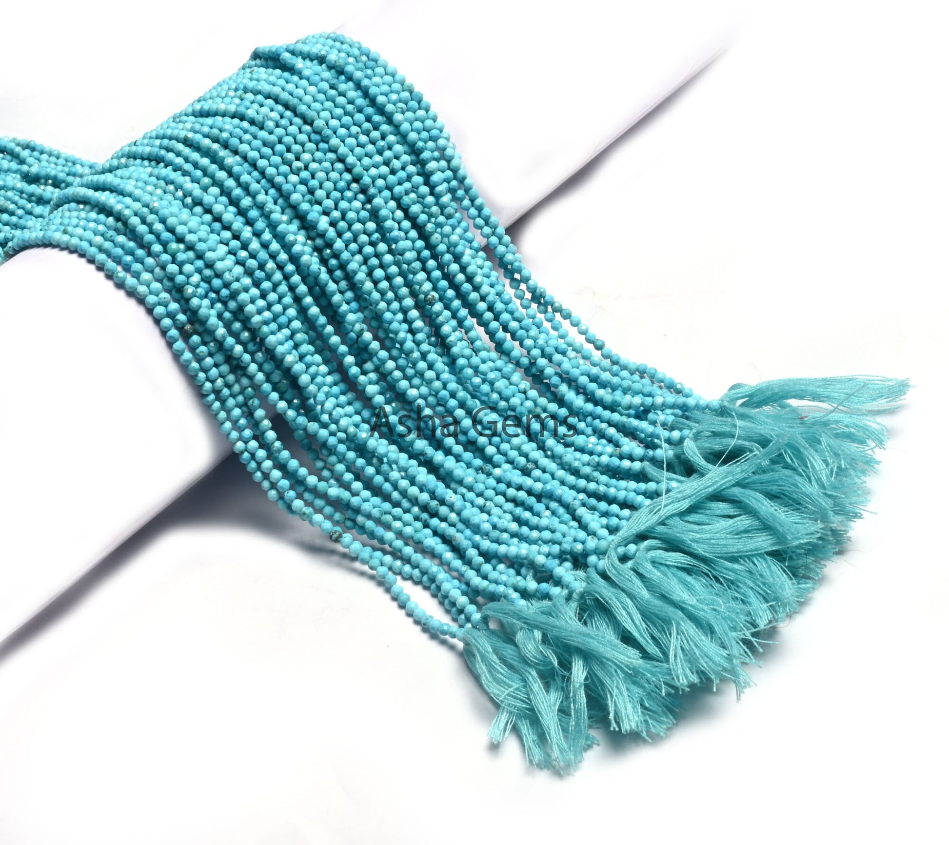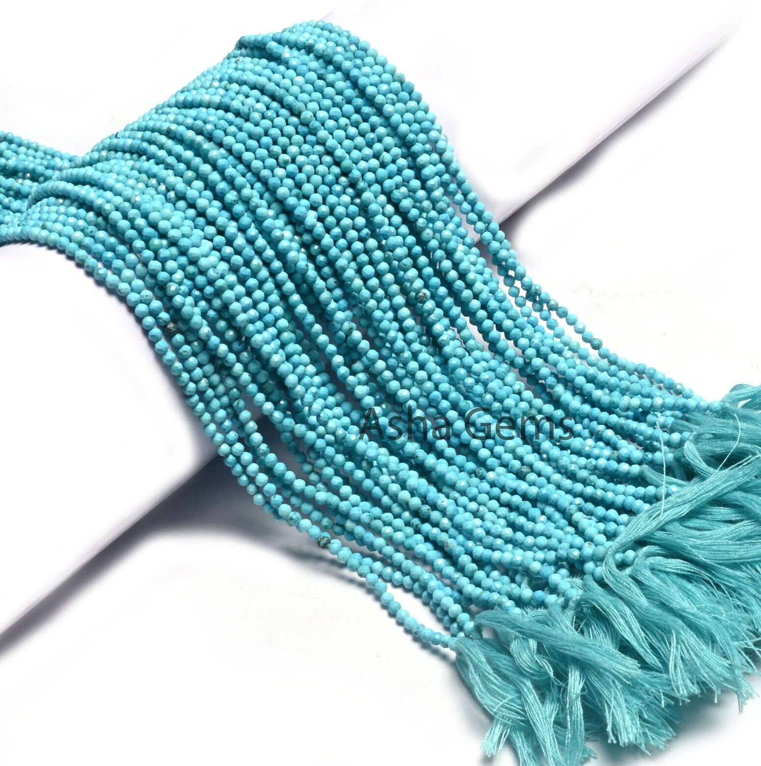 AAA Quality Blue Turquoise Micro Cut Rondelle Gemstone Loose Beads,2.5 mm Turquoise Howlite Machine Cut Faceted Beads Jewelry Making Crafts