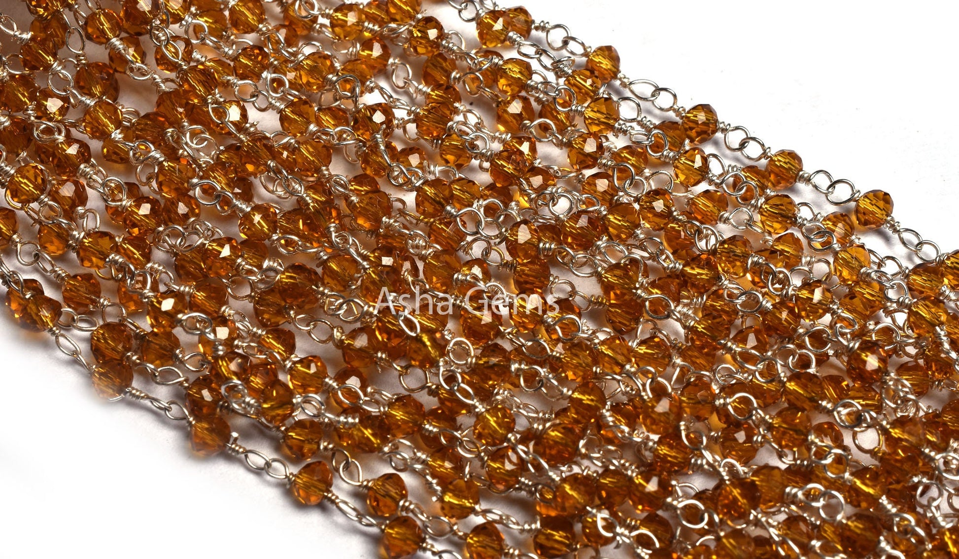 AAA Quality Brown Quartz Hydro Faceted Rondelle Beads Rosary Chain,3 mm Beaded Silver Plated Wire Wrap Bulk Roll Chain Jewelry Making Crafts