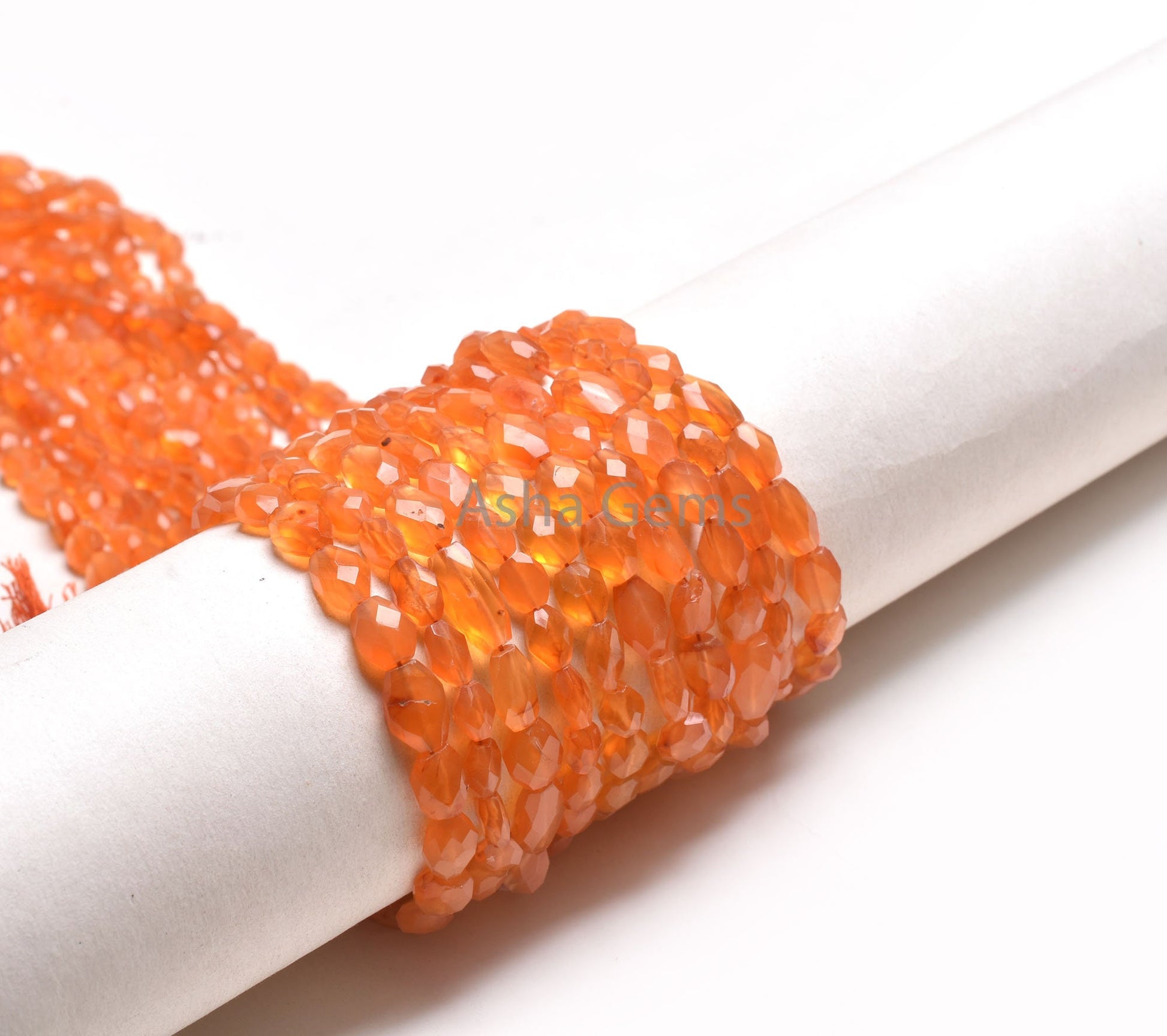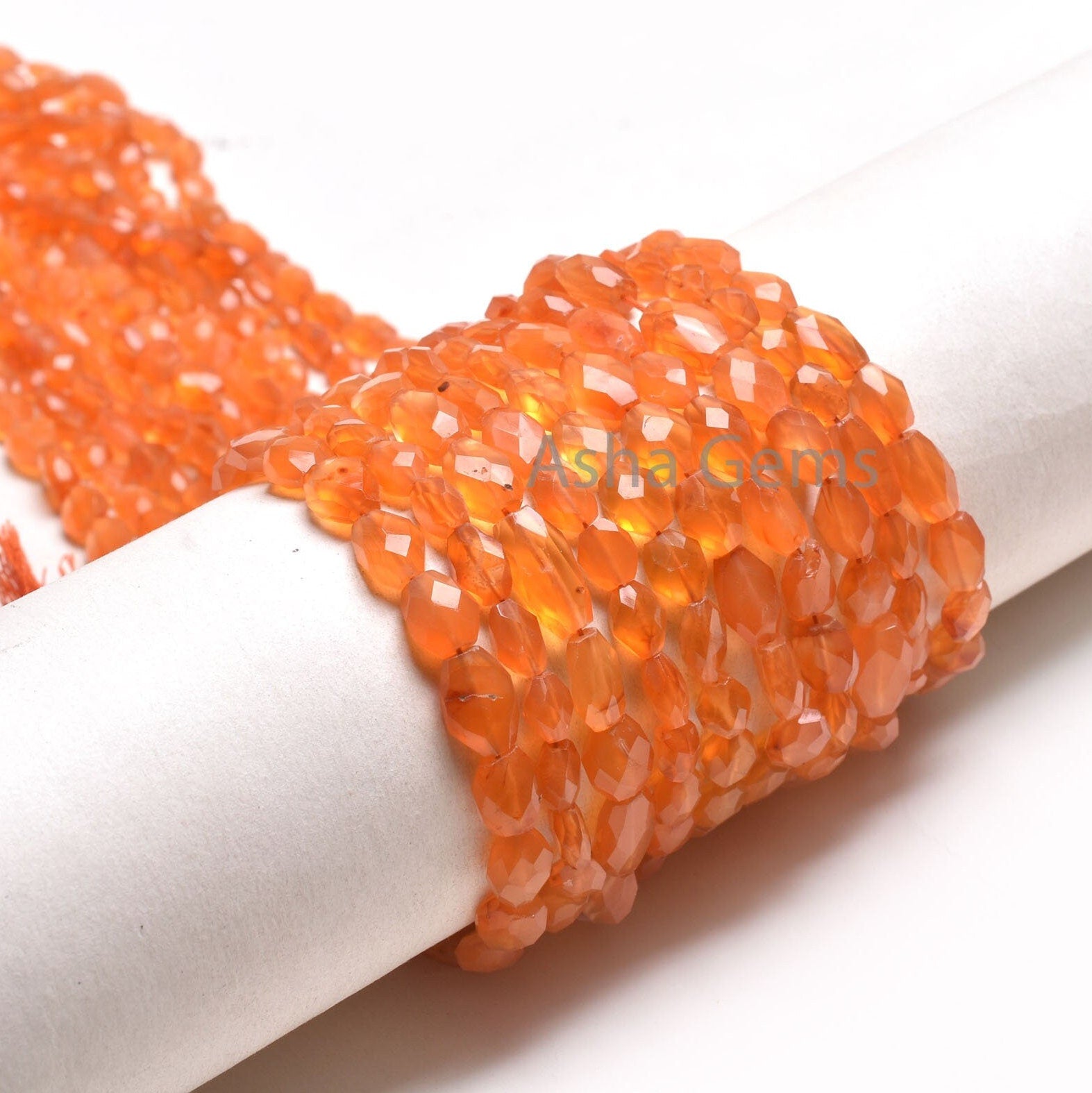 AAA Quality Carnelian Oval Shape Hand Cut Beads,14" Natural Orange Carnelian Faceted Oval Briolette Indian Cut Beads, Carnelian Bead Jewelry