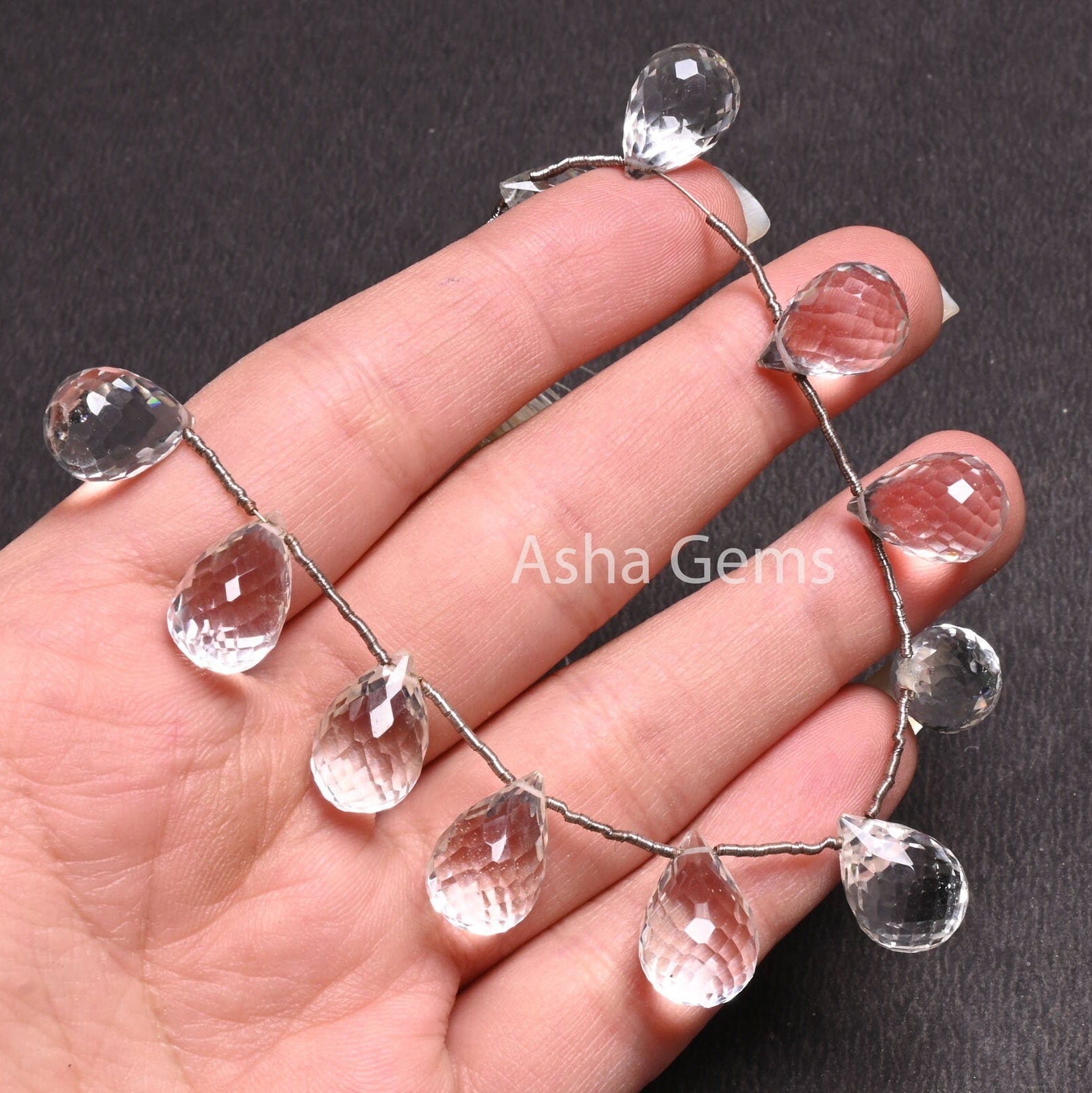 AAA Quality Crystal Faceted Drop Side Drill Gemstone Beads, Natural White Crystal Quartz Teardrop Briolette Bead,6" Crystal Bead Crafts SALE