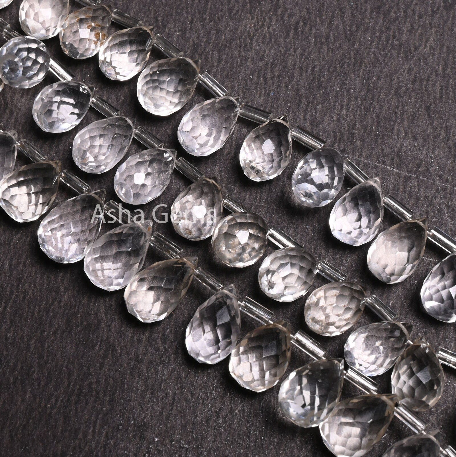 AAA Quality Crystal Quartz Faceted Drop Shape Beads,7"Natural White Crystal Side Drill Teardrop Gemstone Briolette Beads Jewelry Making SALE