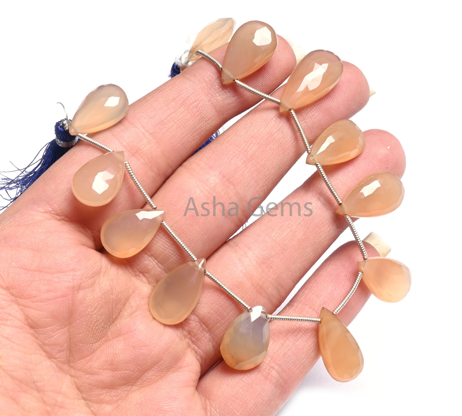 AAA Quality Light Peach Chalcedony Faceted Pear Beads,10-20mm Pink Chalcedony teardrop Briolette Gemstone Side Drill Bead Jewelry Craft SALE