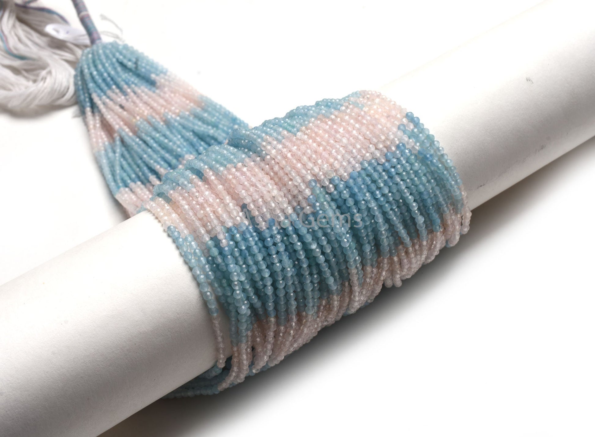 AAA Quality Multi Aquamarine Machine Cut Rondelle Beads,3mm Shaded Morganite Aquamarine Micro Cut Gemstone Beads Aquamarine Necklace Jewelry