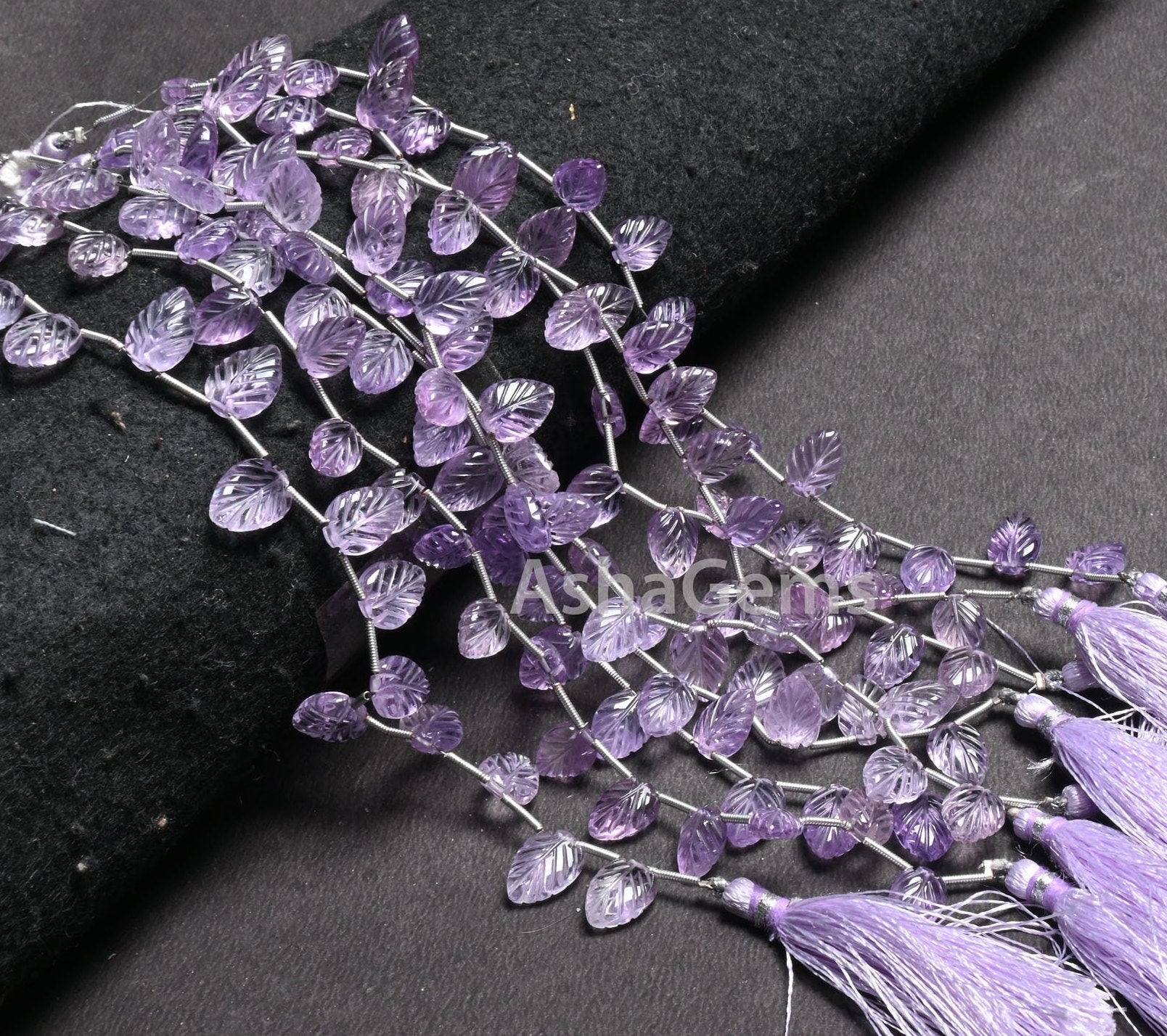 AAA Quality Pink Amethyst Fancy Leaf Shape Carved Gemstone Beads,8" Natural Amethyst Carve Pear Briolette Handmade Bead Jewelry Making Craft