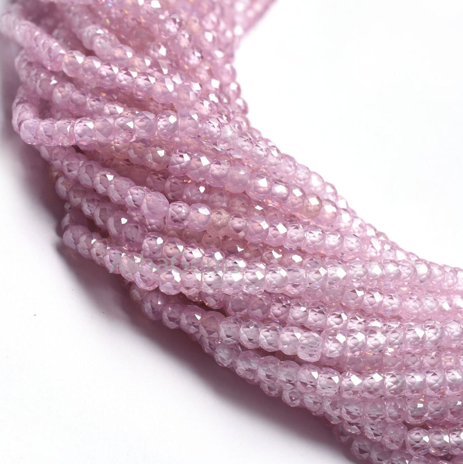 AAA Quality Shaded Pink Zircon Faceted Rondelle beads,3 mm Shaded Pink Cubic zircon Micro Cut Beads,13"Strand Zircon Bead Jewelry Craft SALE