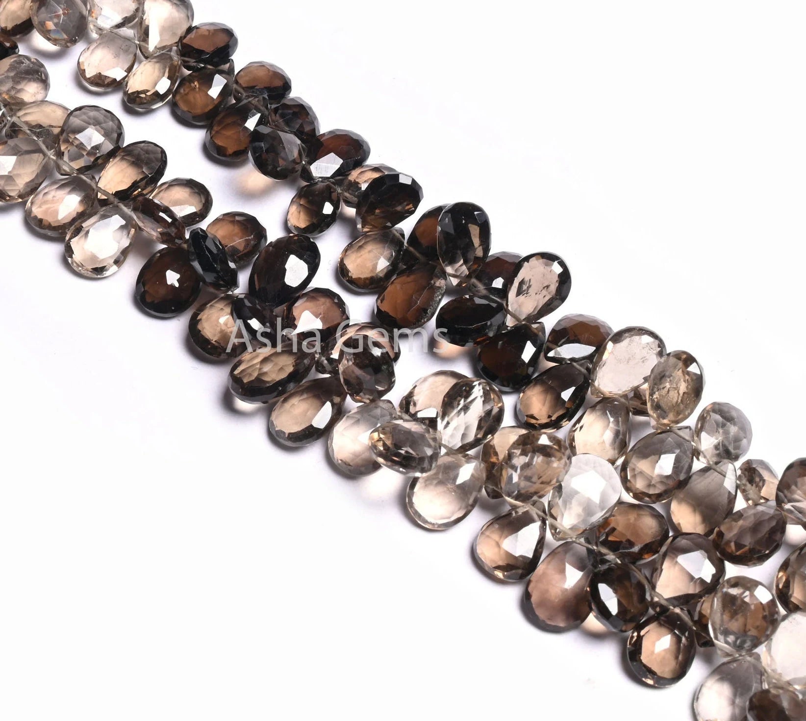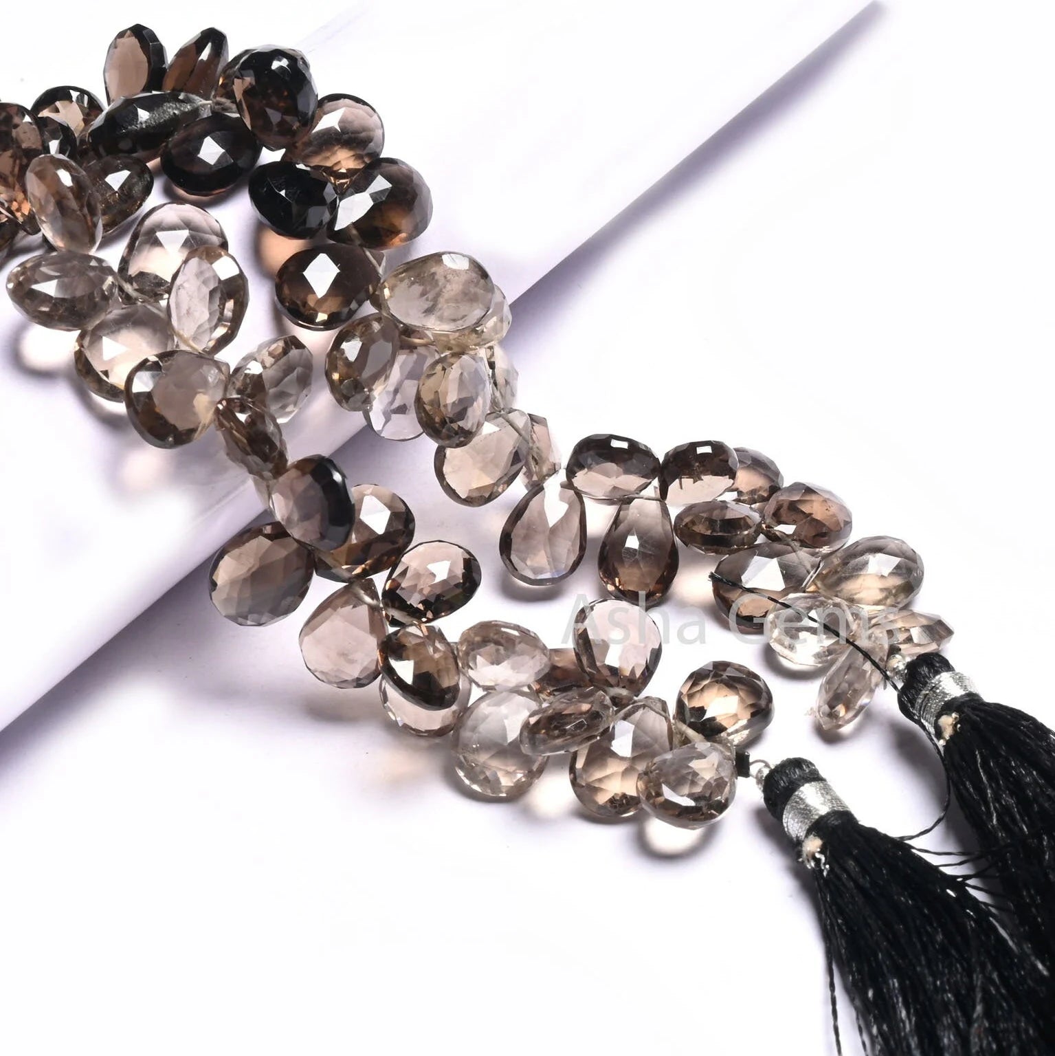 AAA Quality Smoky Quartz Pears Shape Gemstone Faceted Beads,8" Strand Shaded Smoky Briolette Teardrop Side Drill smoky Beads Jewelry Makings