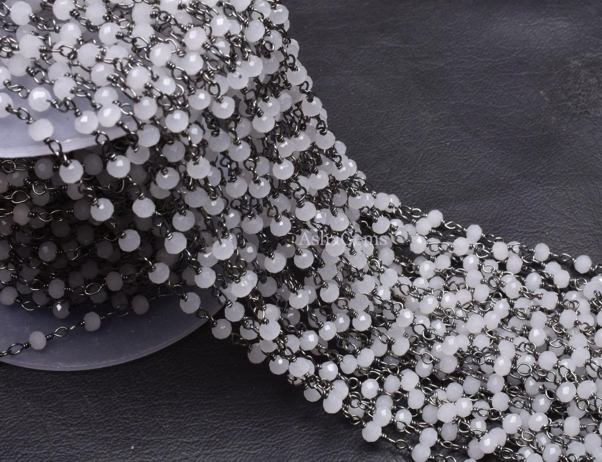 AAA Quality White Quartz Hydro Faceted Rondelle Beads Rosary Chain,3 mm Black Gunmetal Plated Wire Wrap Chain Jewelry Making Handicraft SALE