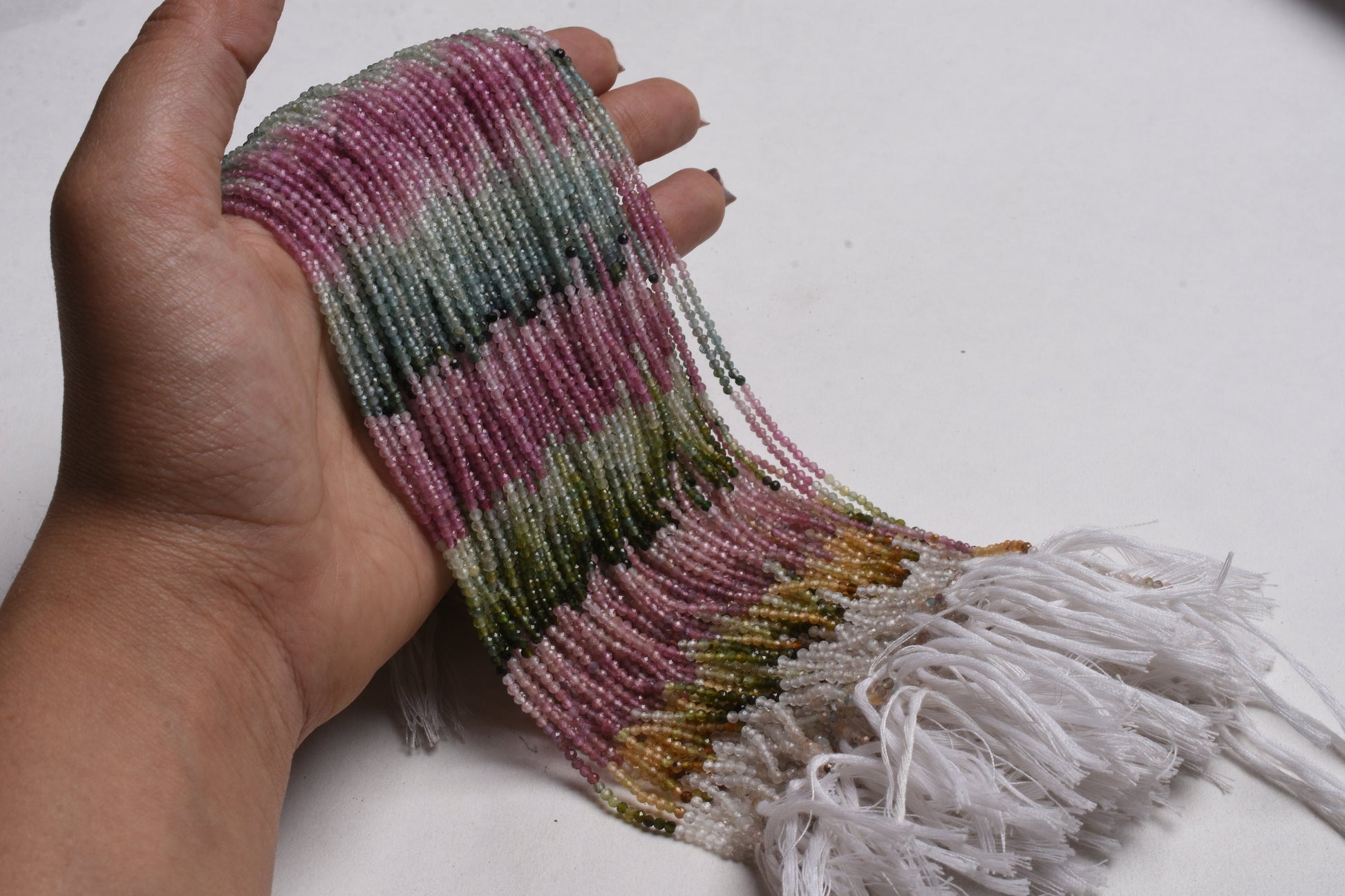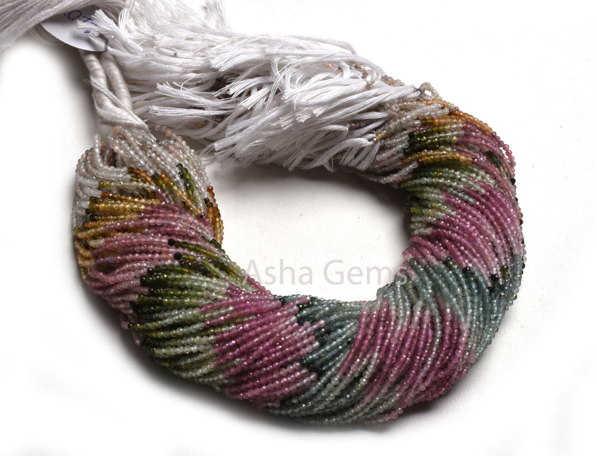 AAA Tourmaline Micro Cut Faceted Rondelle Beads,2.25 mm Natural Multi Tourmaline Machine Cut Gemstone Beads Tourmaline Bead Necklace Jewelry