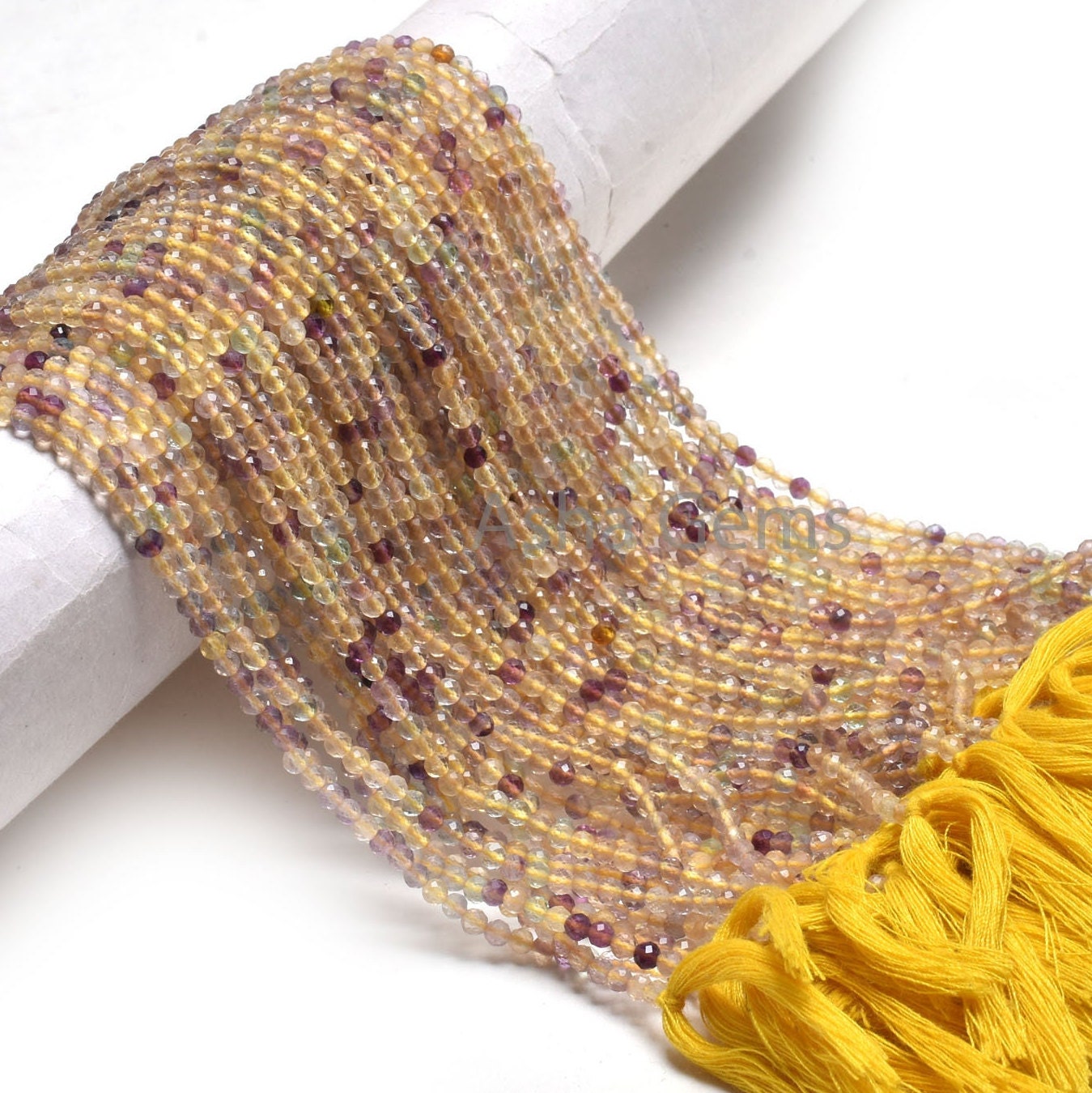 AAA Yellow Fluorite Micro Cut Faceted Rondelle Beads,3 mm Natural Fluorite Machine Cut Gemstone Beads, Rare Fluorite Bead Jewelry Craft SALE