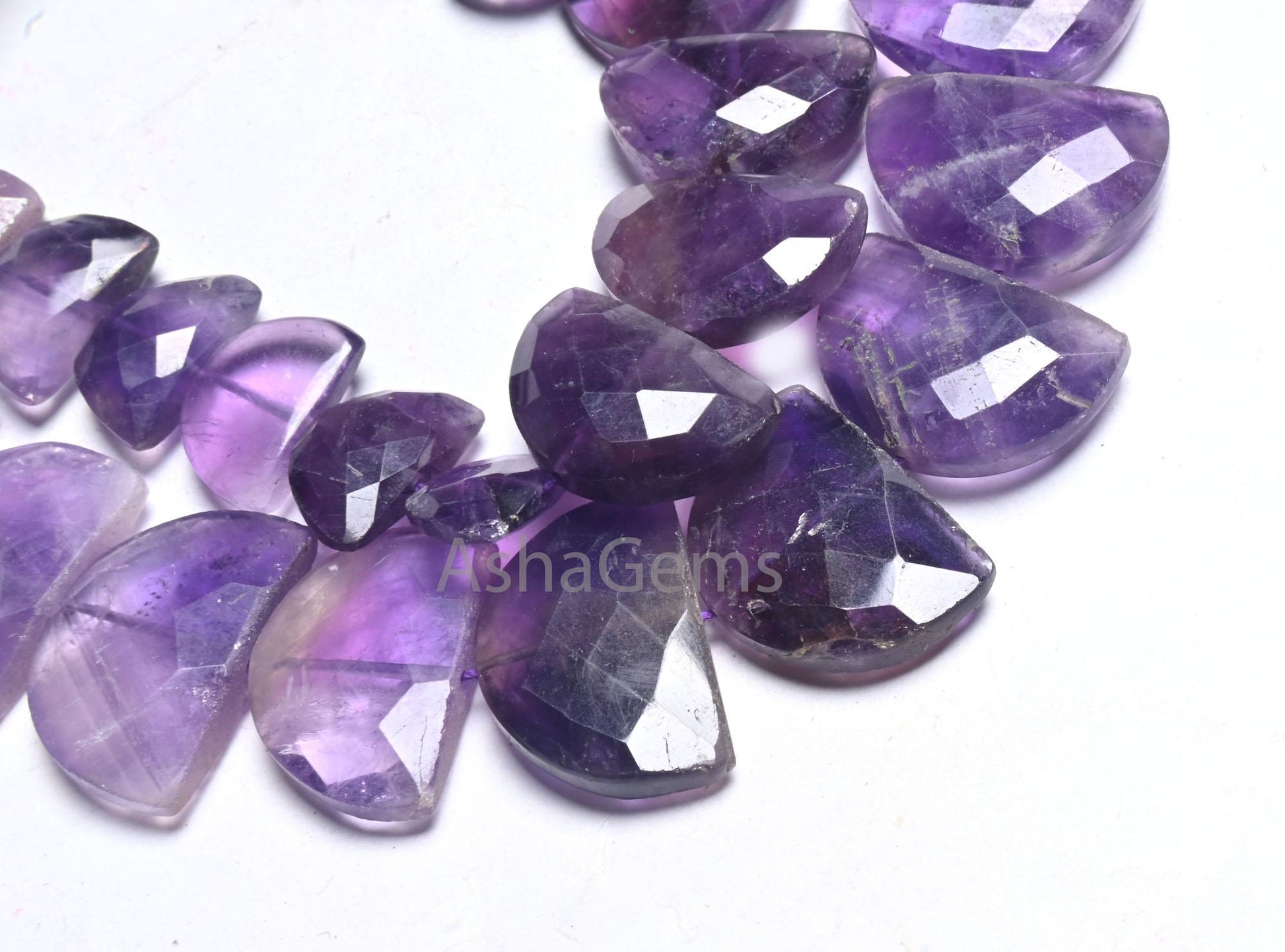 African Amethyst Faceted D Shape Fancy Gemstone Beads,9" Natural Purple Amethyst Half Moon Briolette Checker Cut amethyst Beads Jewelry SALE (AG 18686)