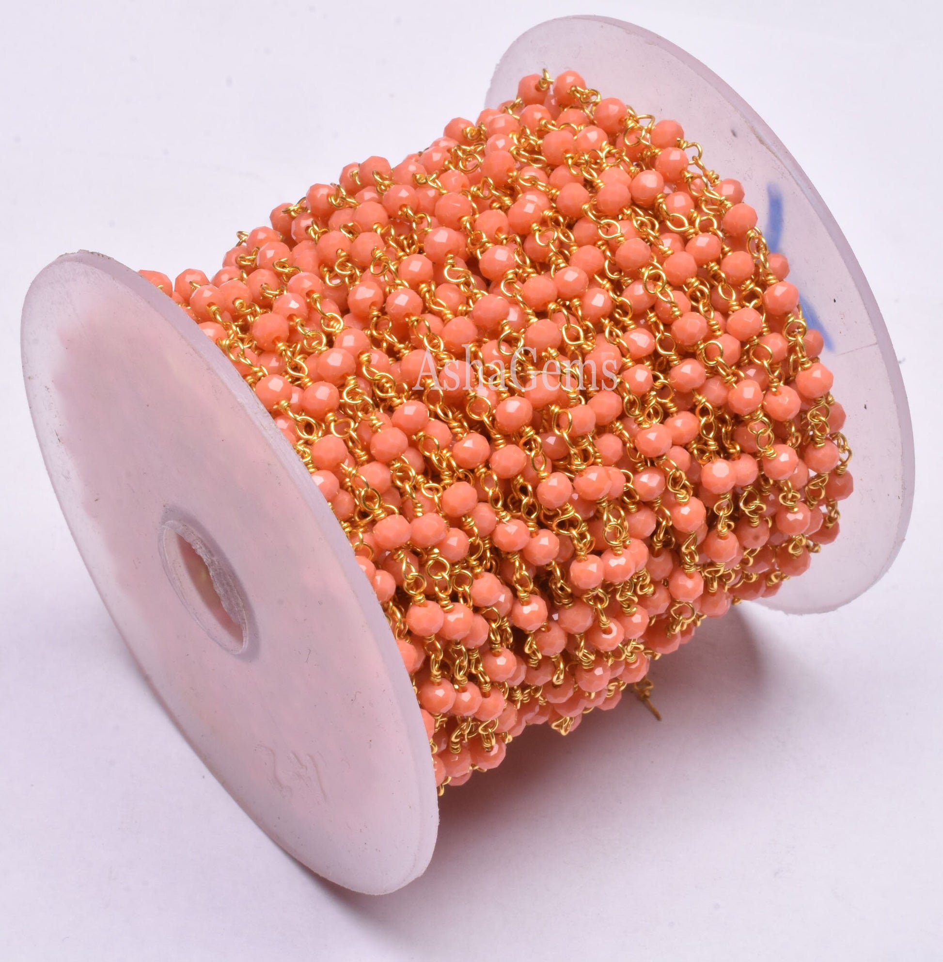 Amazing Orange Carnelian Hydro Faceted Beads Rosary Chain,3-3.5mm Rondelle Beaded Gold Plated Wire Wrapped Handmade Chain Jewelry Making Craft SALE