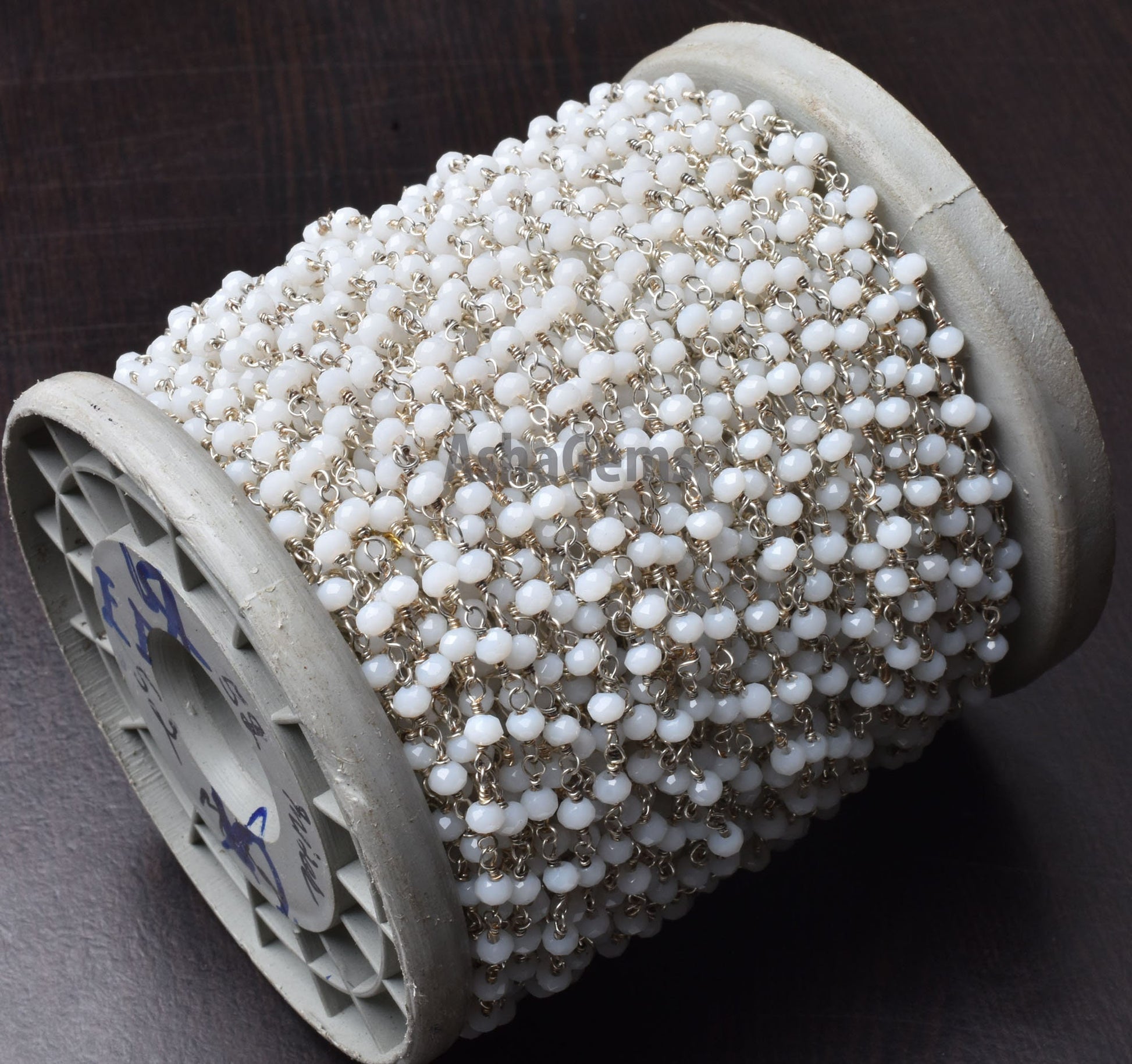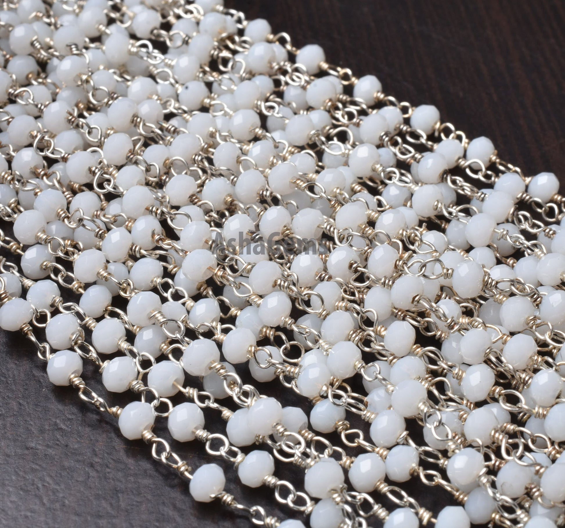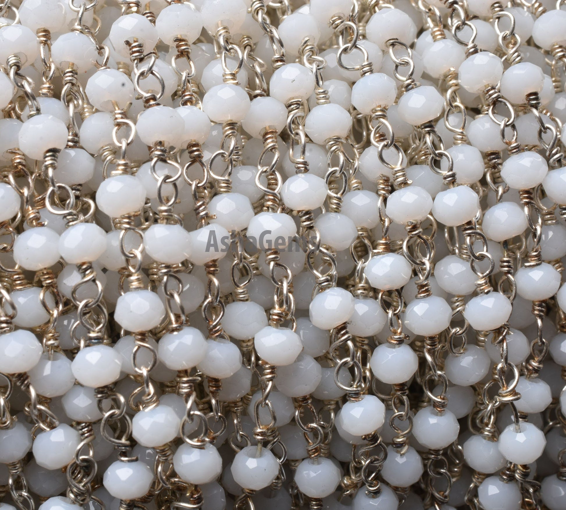 Amazing White Agate Hydro Faceted Rondelle Beads Rosary Chain,3 mm Silver Plated Wire Wrap Chain By Feet Rosary Chain Jewelry making Crafts