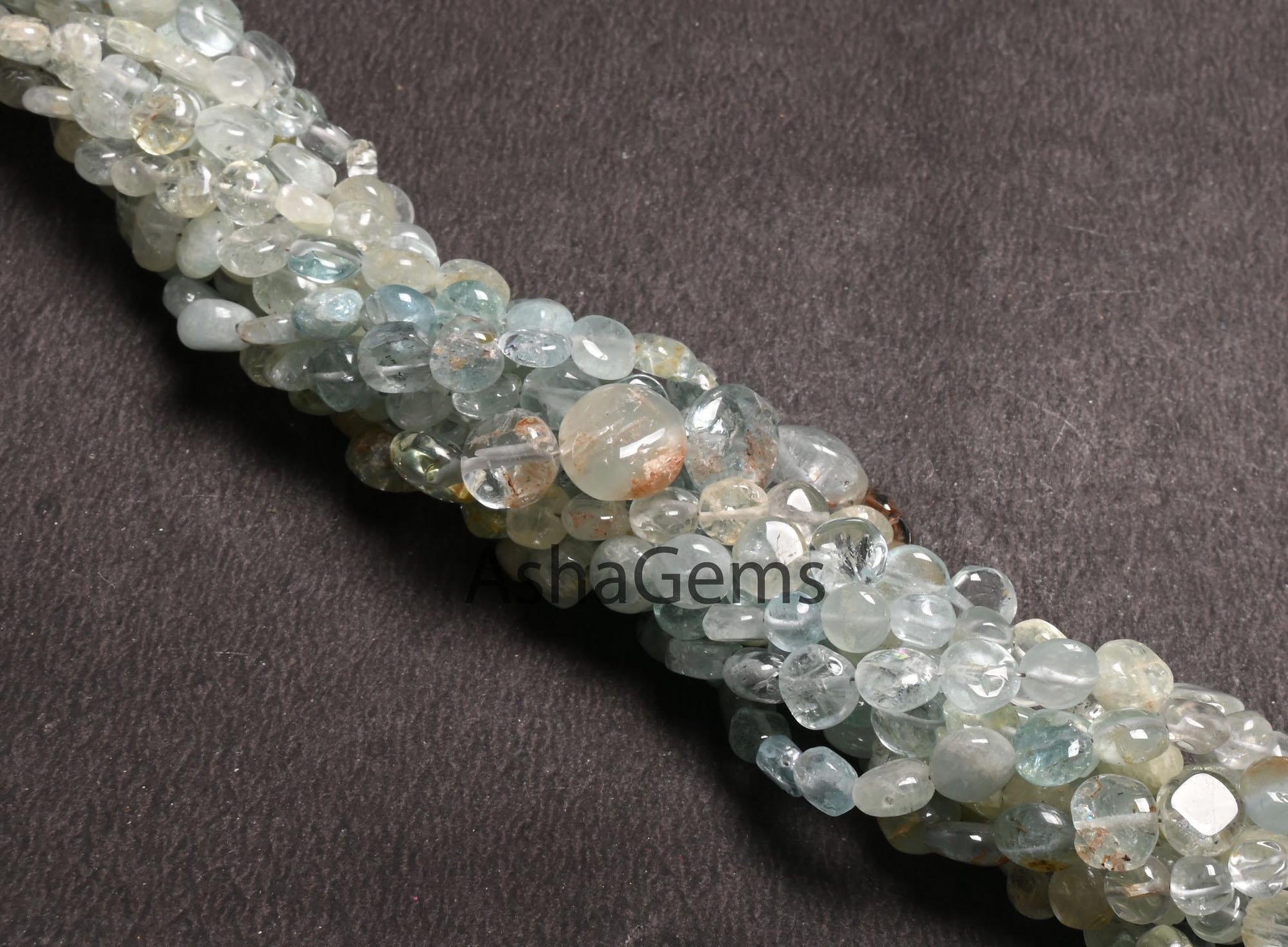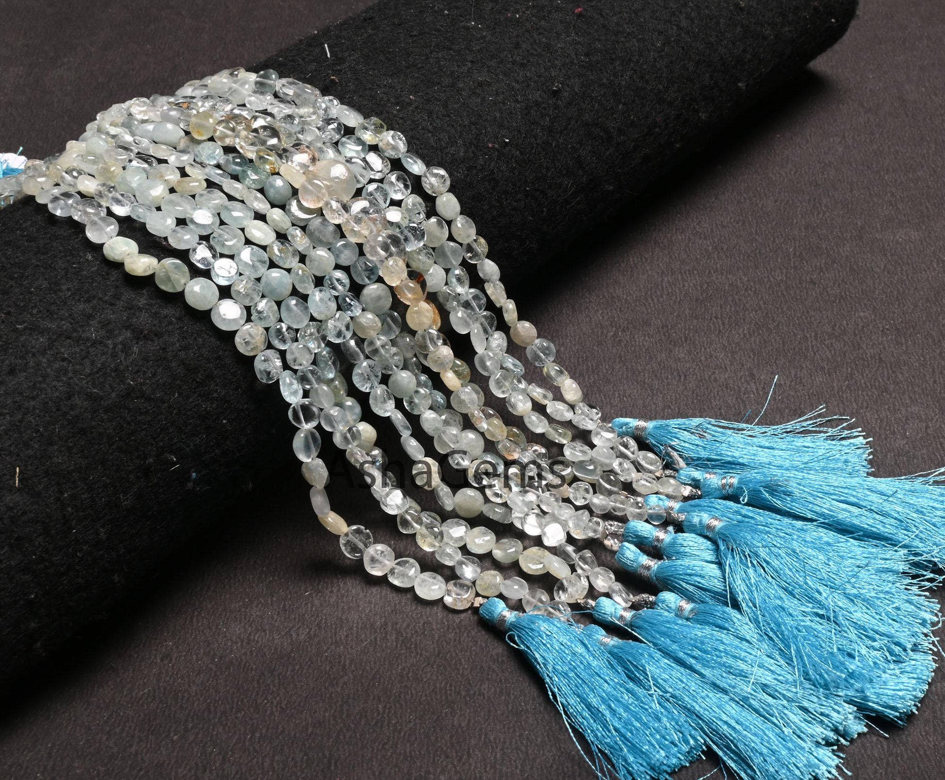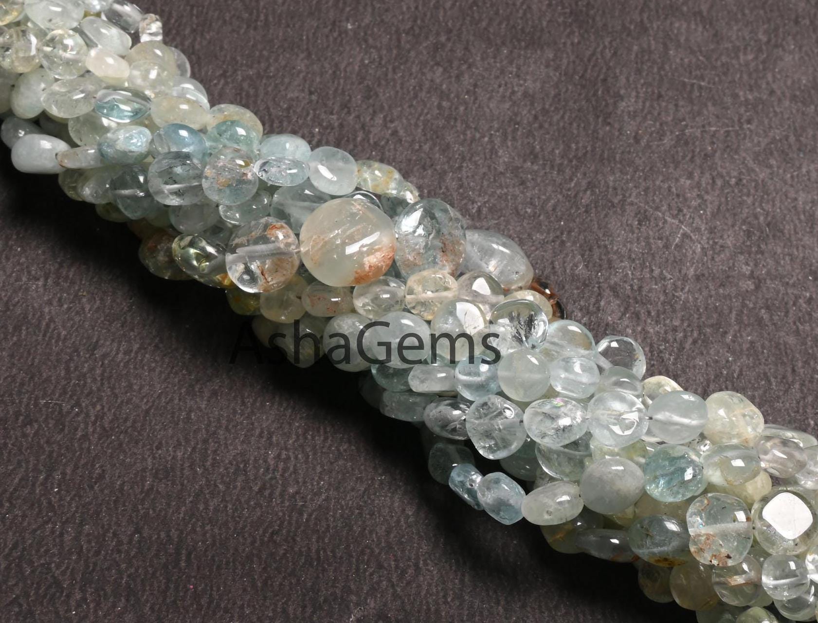 Aquamarine Beads, Light Aqua Blue Aquamarine Plain Handmade Coin Beads Gemstone Smooth Coin Uneven Shape Beads For Jewelry Making Crafts 8"