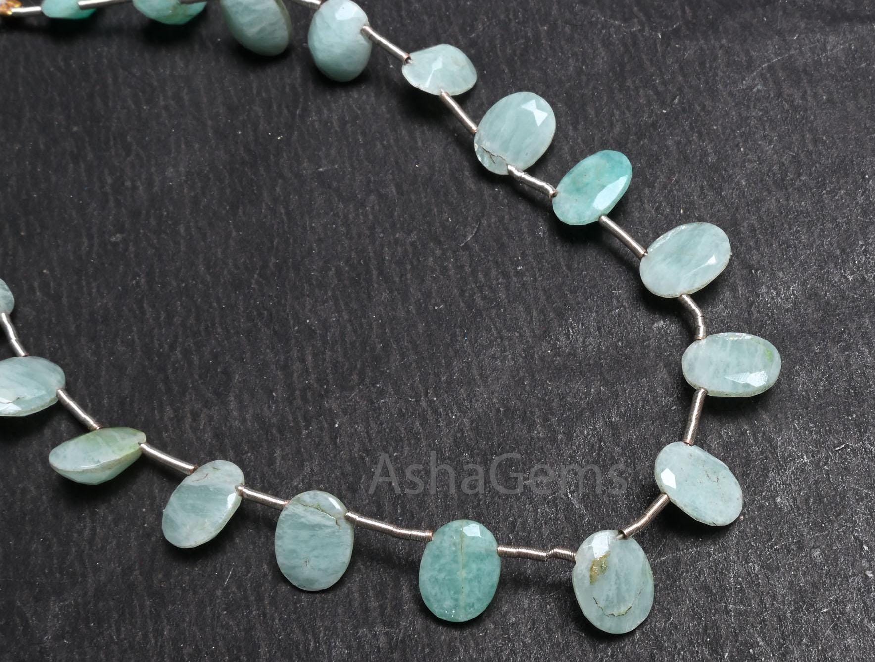 Beautiful Amazonite faceted Oval Beads,7x9 mm Natural Blue Amazonite Fancy Oval Cabochon Side Drill Briolette Gemstone Beads Jewelry Crafts