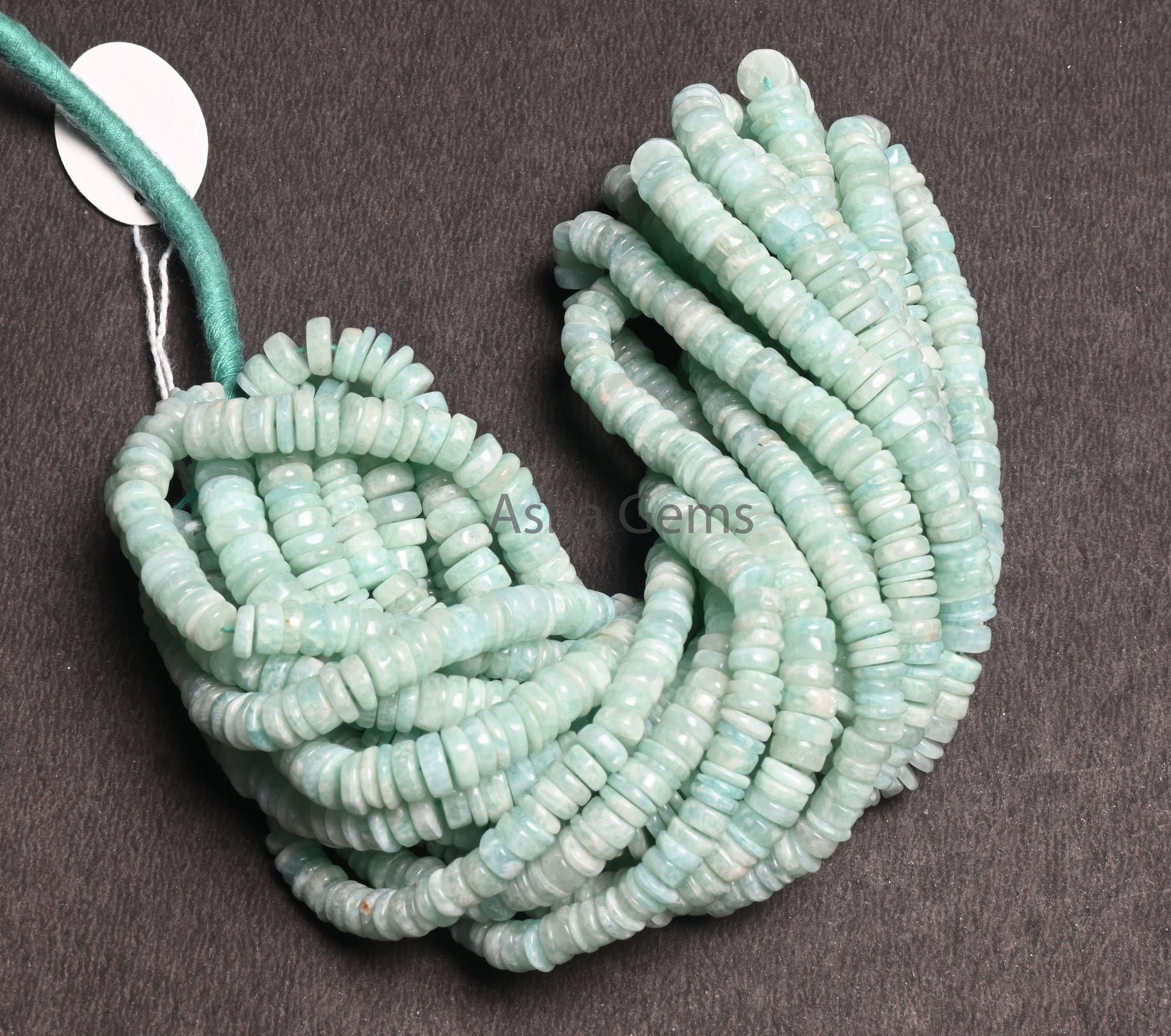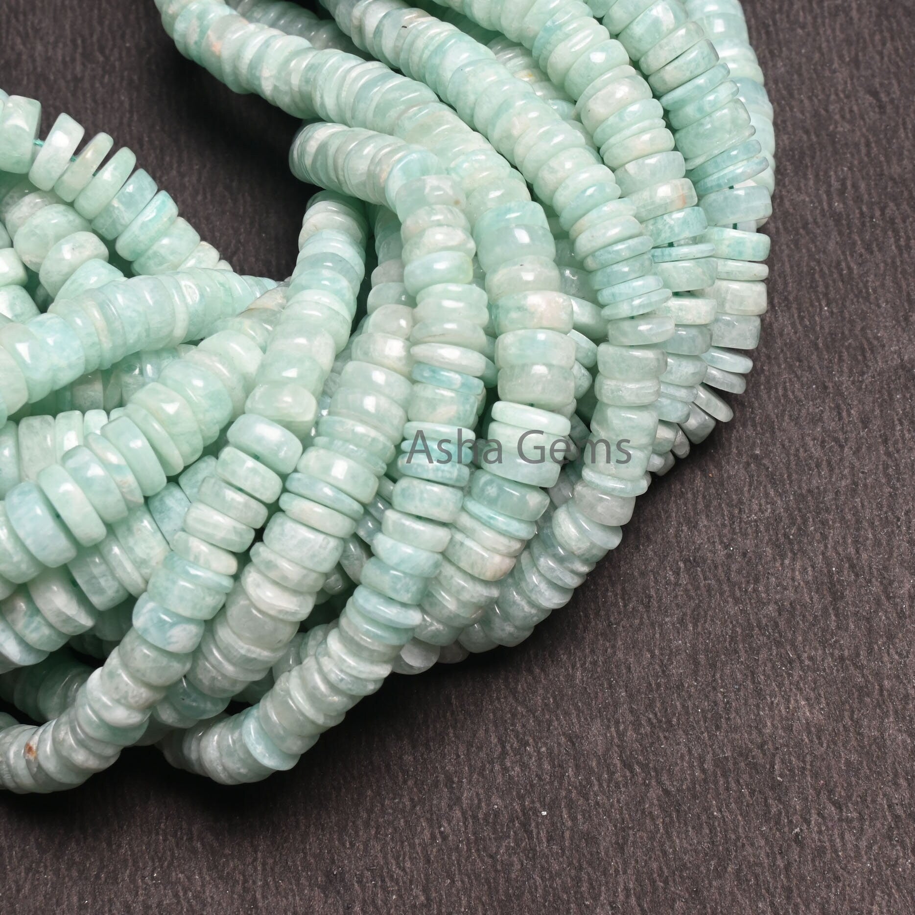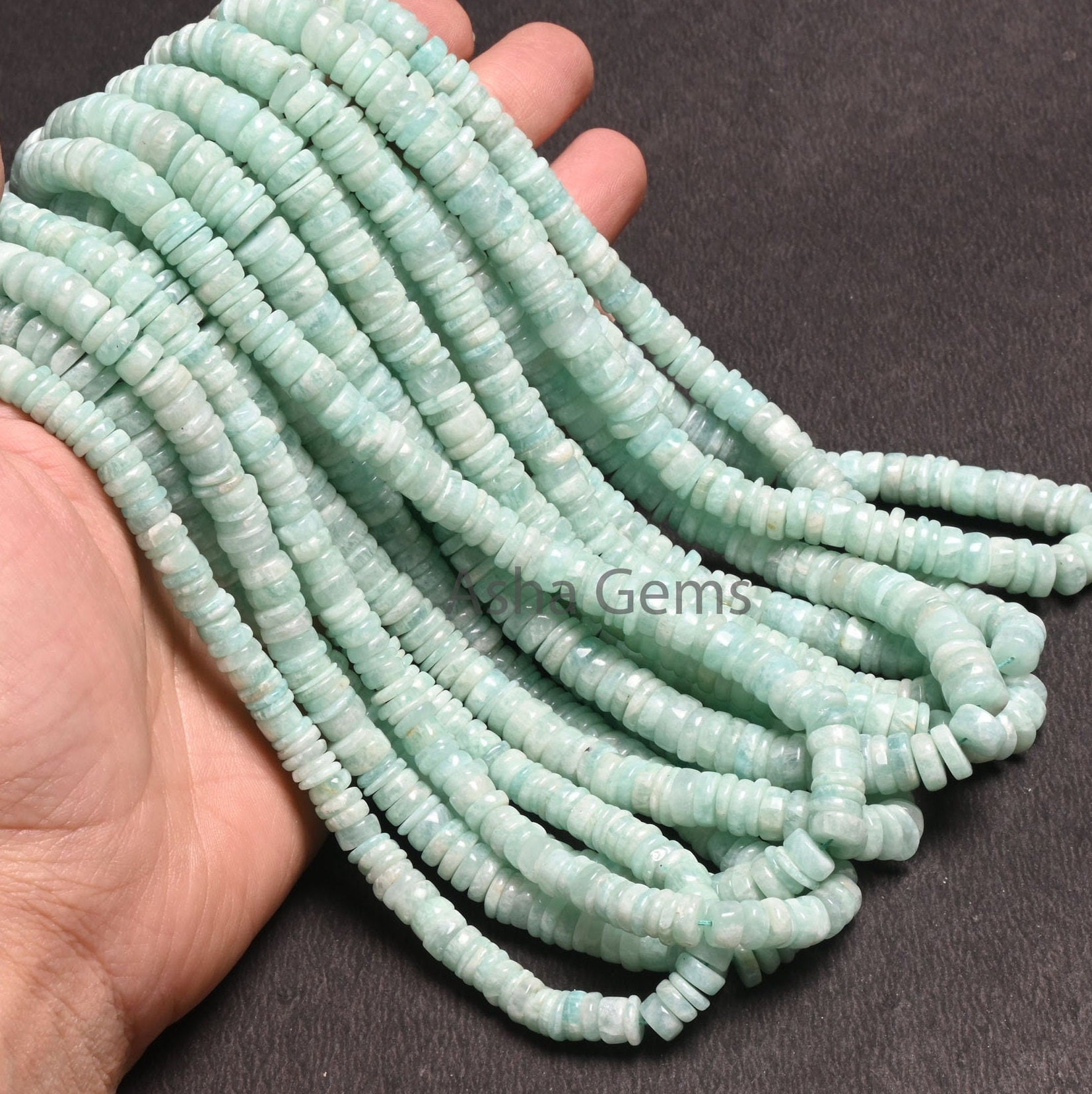 Beautiful Amazonite Smooth Heishi Tyre shape beads, Natural Blue Amazonite Flat Wheel Handmade Gemstone Amazonite Center Drill beads Jewelry