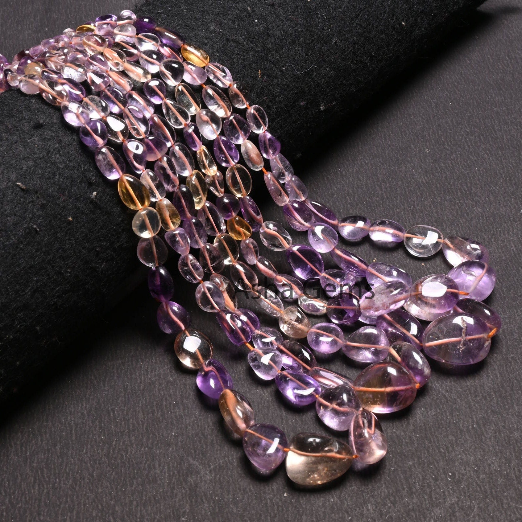 Beautiful Ametrine Smooth Nugget beads,9/18" Strand Fine Natural Ametrine Plain Handmade Tumble Gemstone Straight Drill Beads Jewelry Crafts