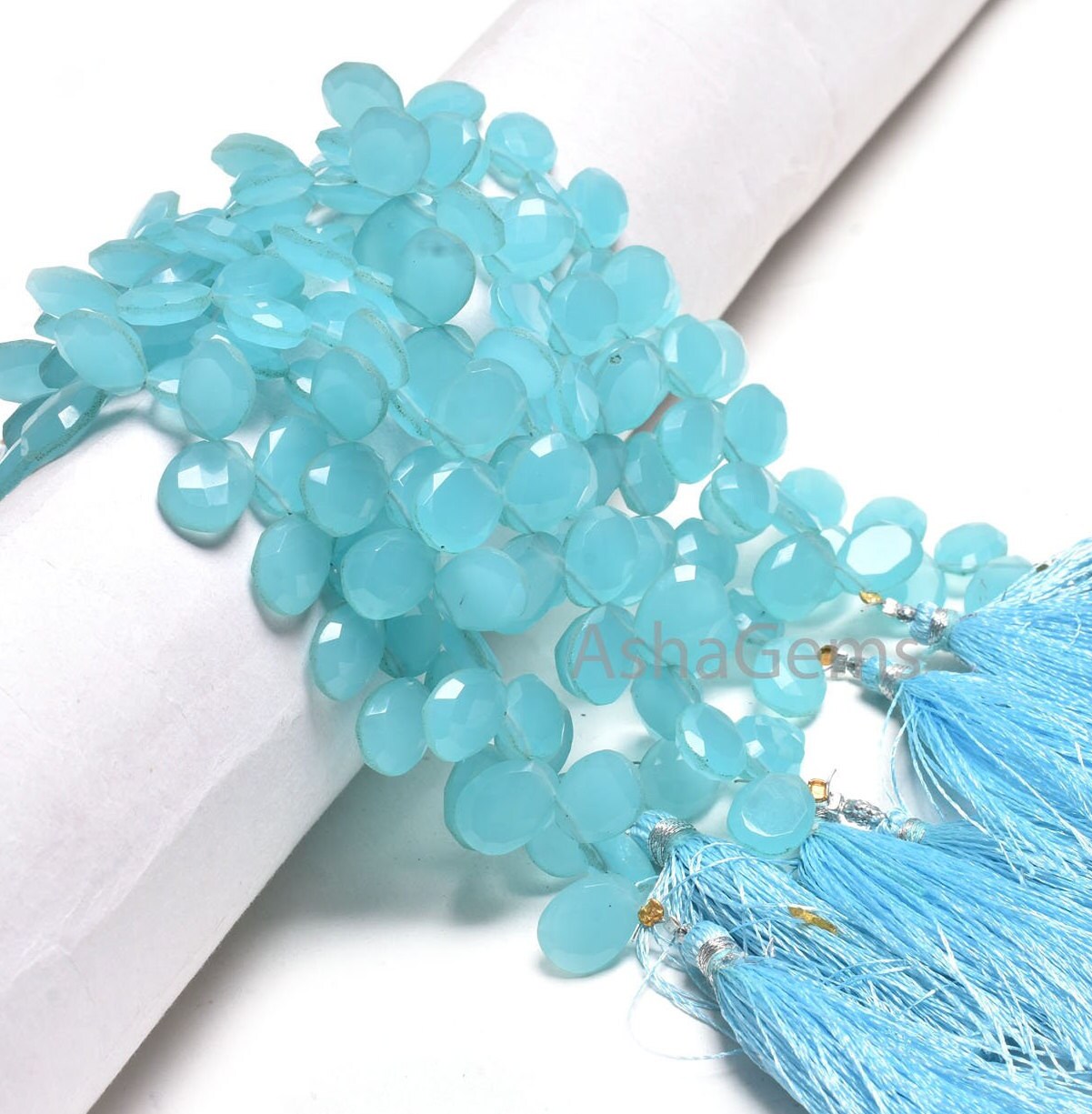 Beautiful Aqua Blue Chalcedony Hydro Fancy Shape Gemstone Beads,9-12.5 mm AAA Chalcedony Hydro Faceted Egg Shape Briolette Side Drill Beads